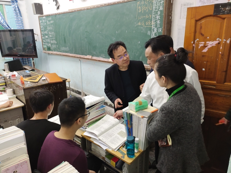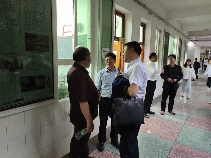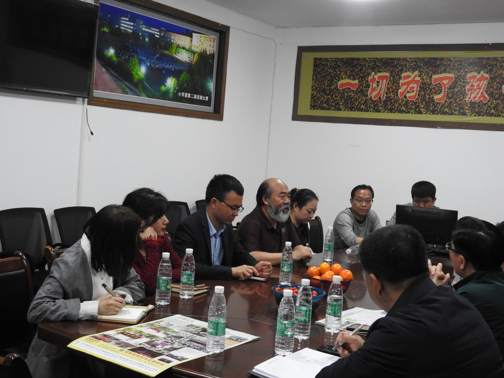 晚自习时间,宾主在会议室召开座谈会。会上,罗校长就学校顺其自然的办学理念、分层教学的原理与实操、初高中2+4与小初高5+3+4的学制创新、艺术高考等办学特色与客人们分享交流。