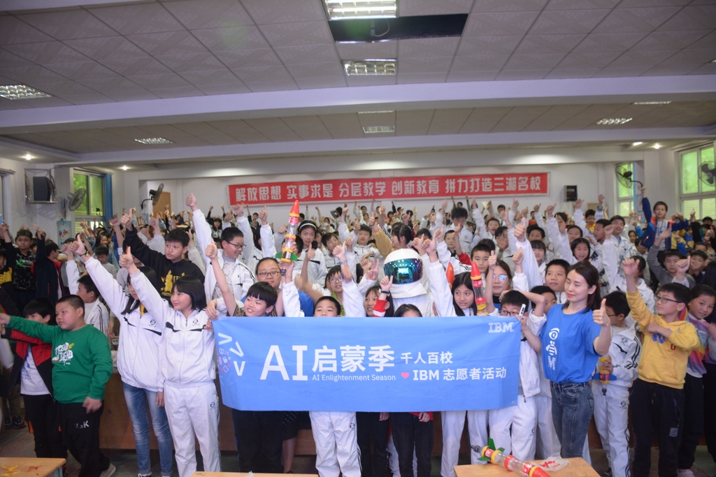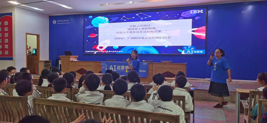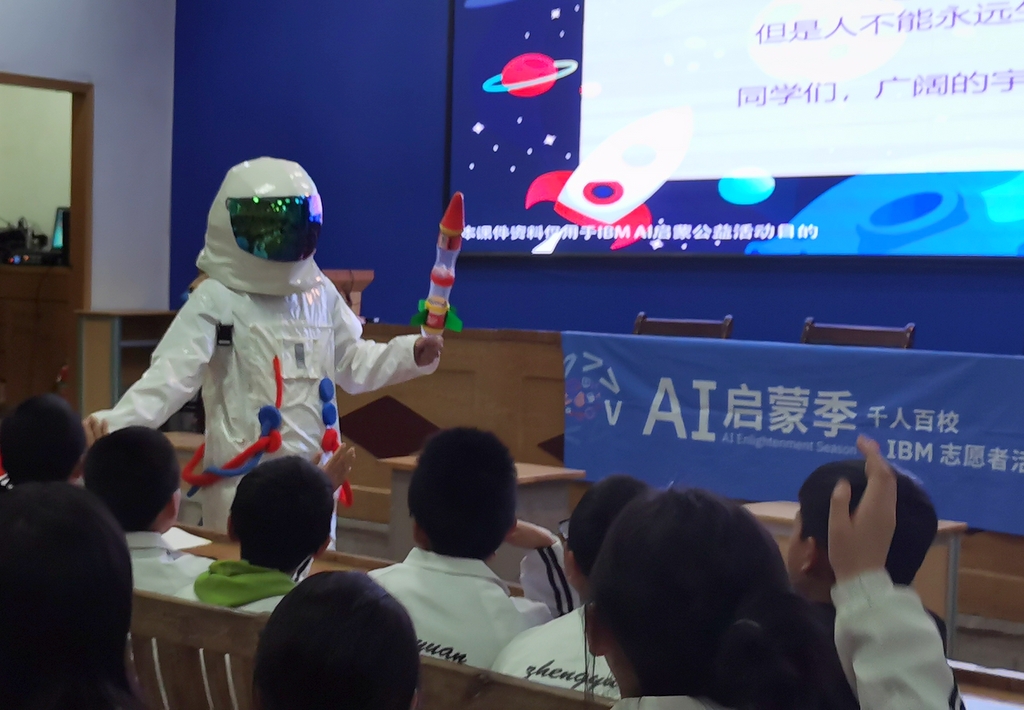火箭腾空而起 “宇航员”与同学们击掌致意——IBM“AI启蒙季”公益讲座进正源第三课