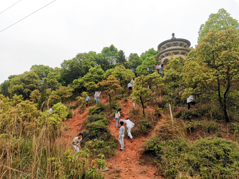 一抬头发现山林里藏着个半山亭,仿佛发现了新大陆,一个个成了脱缰的野马,争先恐后,蜂拥而上。还要转过身来跟后面的同学臭美“会当凌绝顶,一览众山小”,全然不管什么叫“半山亭”。