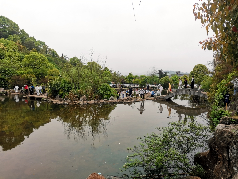 大部队到齐了,自然不能错过门口的池塘。前些天刚刚学过的“小桥流水人家”有多么美好,这片错落有致的池塘就有多么的美妙。