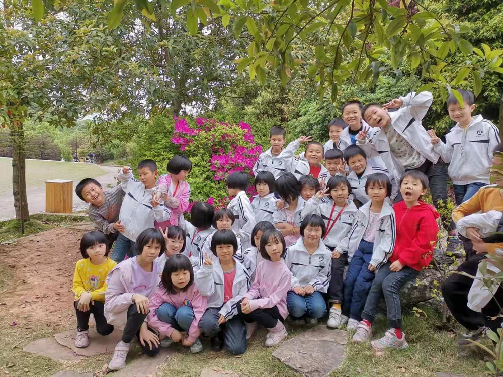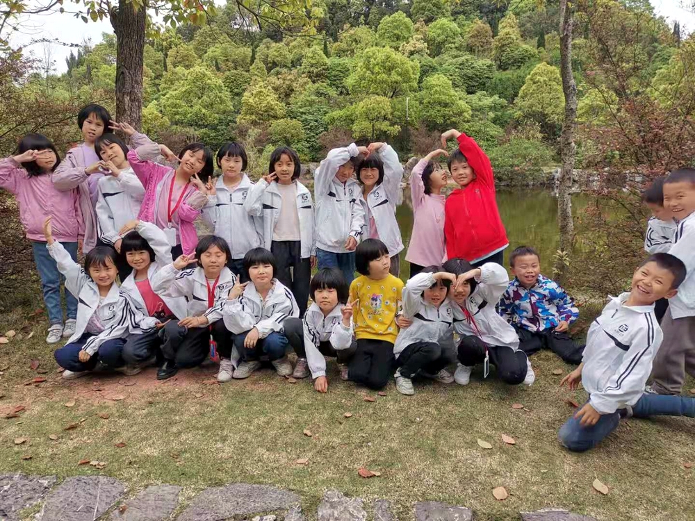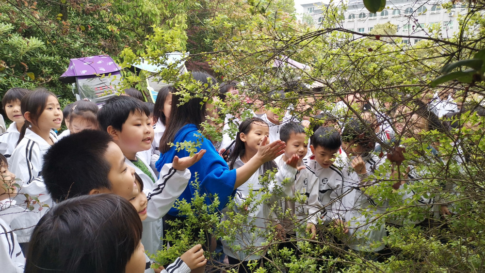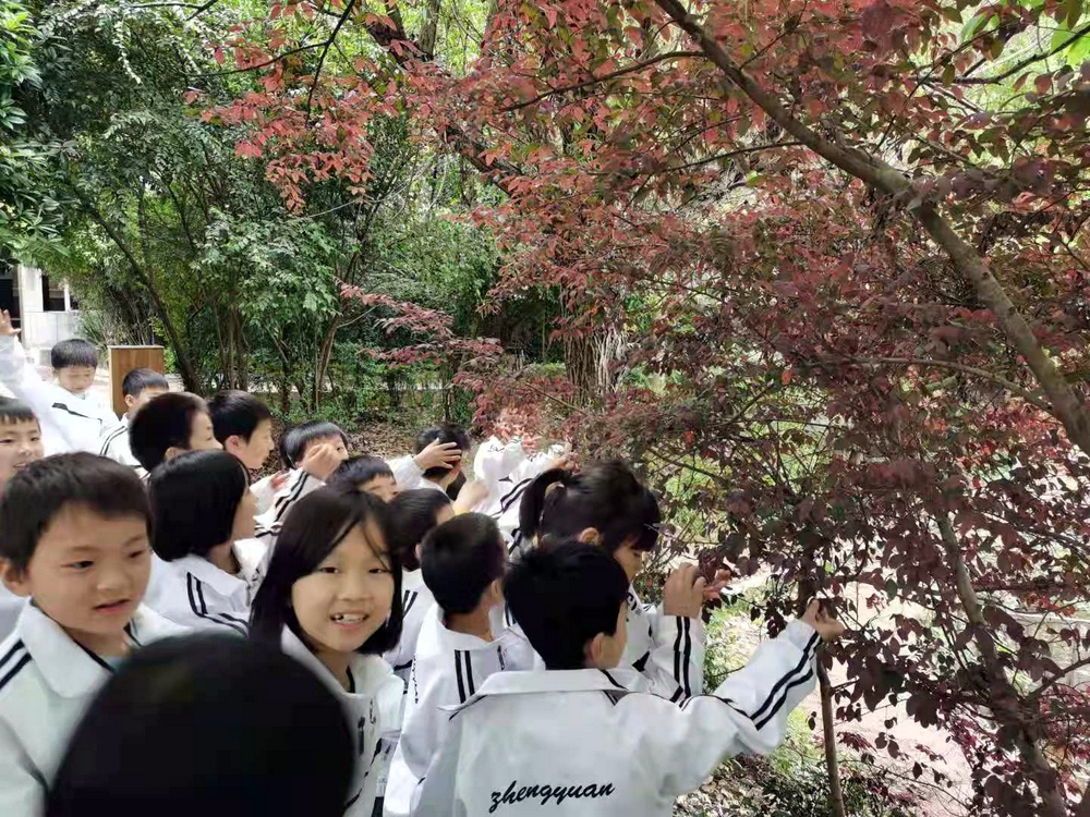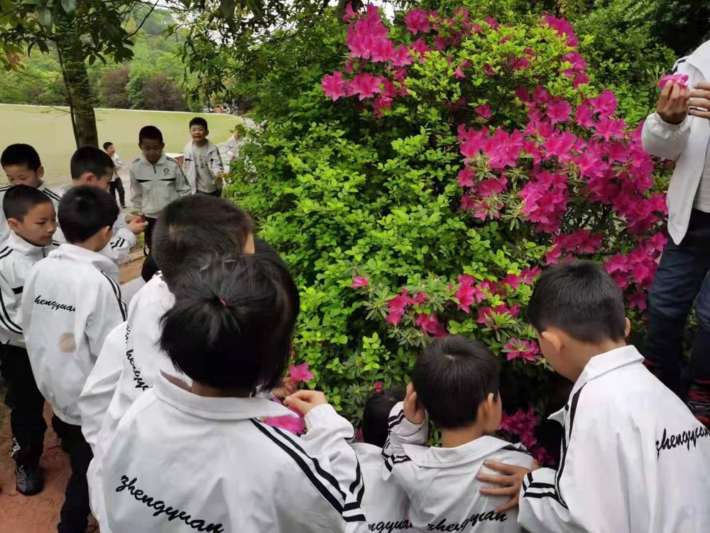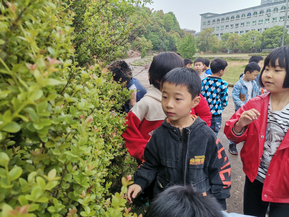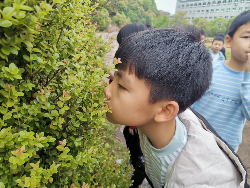 同学们欣赏着校园的美丽春景、花草树木,他们在实践中认识了樟树、雪松、迎春花、山茶花、樱花……他们和大自然的花草树木来了个亲密接触,增长了不少课外知识。
