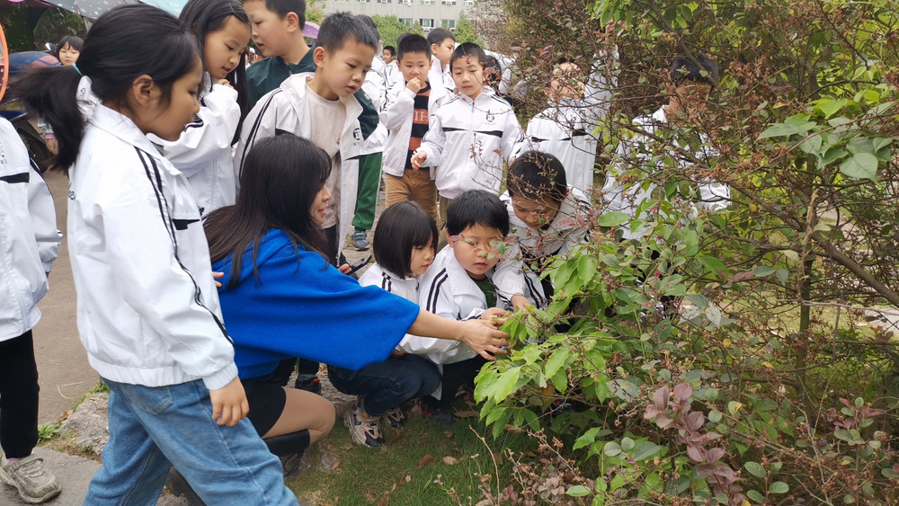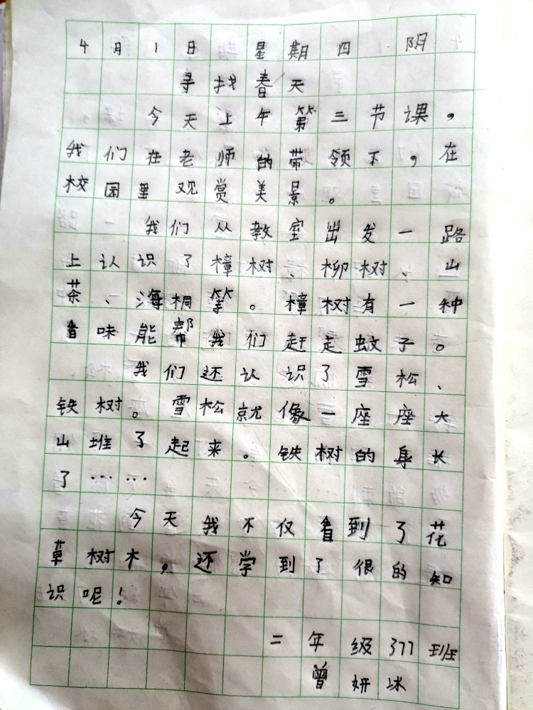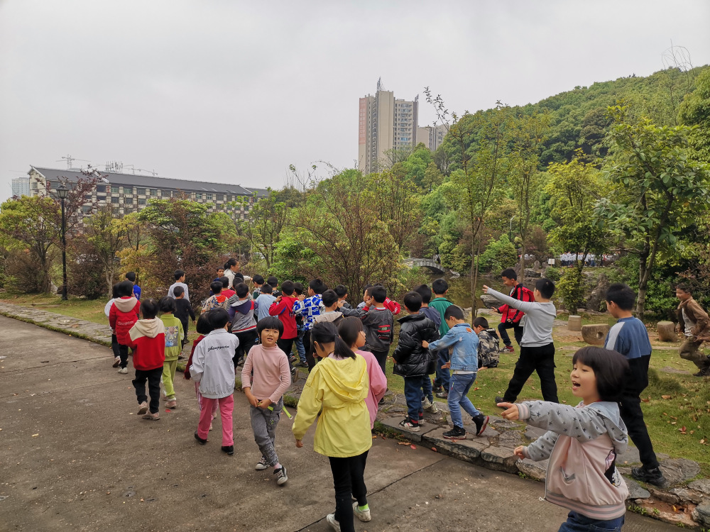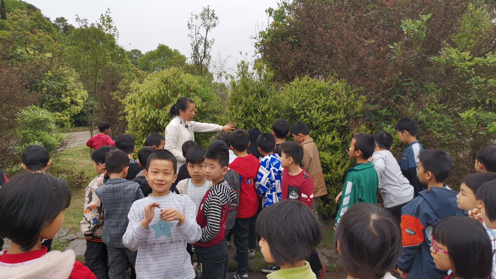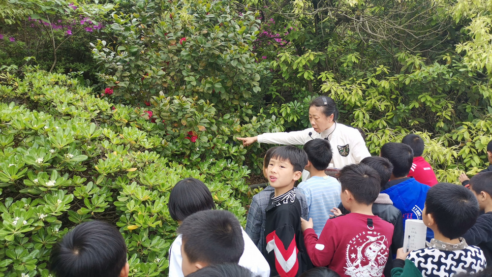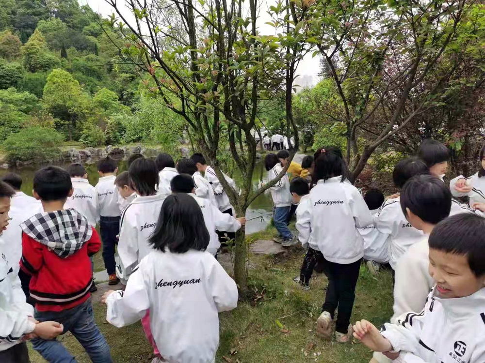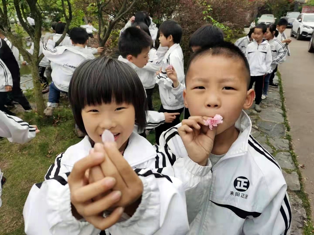 同学们欣赏着校园的美丽春景、花草树木,他们在实践中认识了樟树、雪松、迎春花、山茶花、樱花……他们和大自然的花草树木来了个亲密接触,增长了不少课外知识。