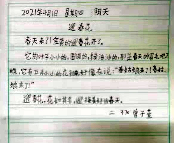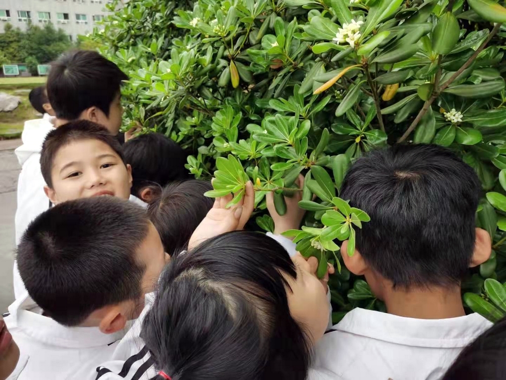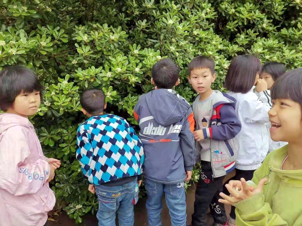 看,同学们从西头的教学楼出发,一路上欢歌笑语。走过一条开满鲜花的小路,杜鹃花、山茶花芳香扑鼻,令人沉醉。路边的海桐已开花,同学们有的在闻花香,有的在观察花朵。一阵风吹来,在阳光照耀下的迎春花、樱花轻轻摇曳,像是在向同学们打招呼。同学们纷纷近距离感受着花儿的娇俏迷人,忍不住来个合影留念。