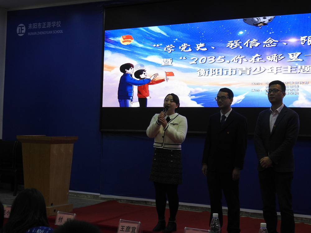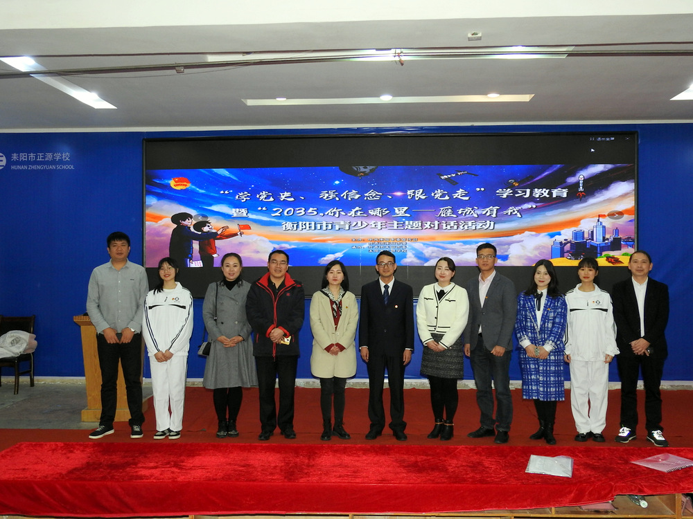 4月9日上午,“学党史、强信念、跟党走”学习教育暨“2035,你在哪里——雁城有我”衡阳市青少年主题对话活动在正源学校报告厅举行。活动由中共衡阳市委宣传部、共青团衡阳市委主办,共青团耒阳市委、正源学校承办。