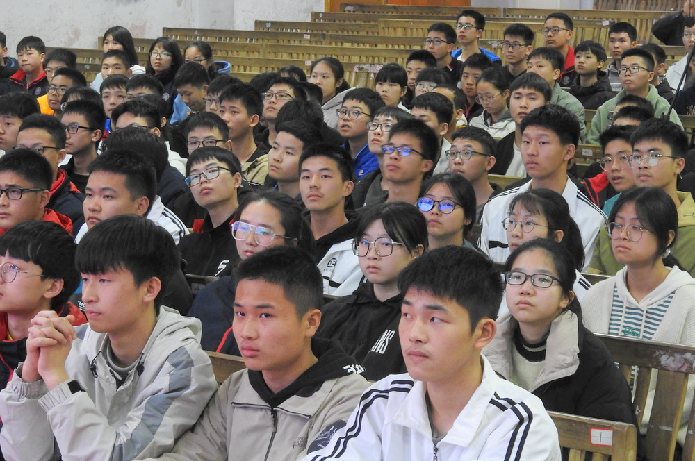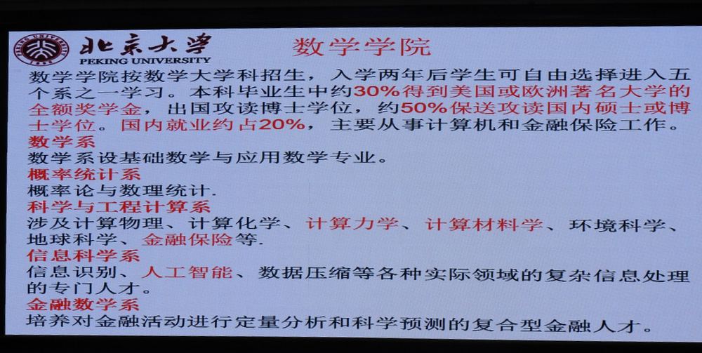 紧接着,肖教授一边解释大学文科、理科、工科的区别,阐述数学、物理、化学等基础学科在信息技术、人工智能、芯片材料、航空航天、基因工程、生命科学等领域的应用前景;一边给同学们介绍北大的各个学院、优势学科及前沿科技研究中心,进而向同学们介绍北大在湖南的招生录取情况。