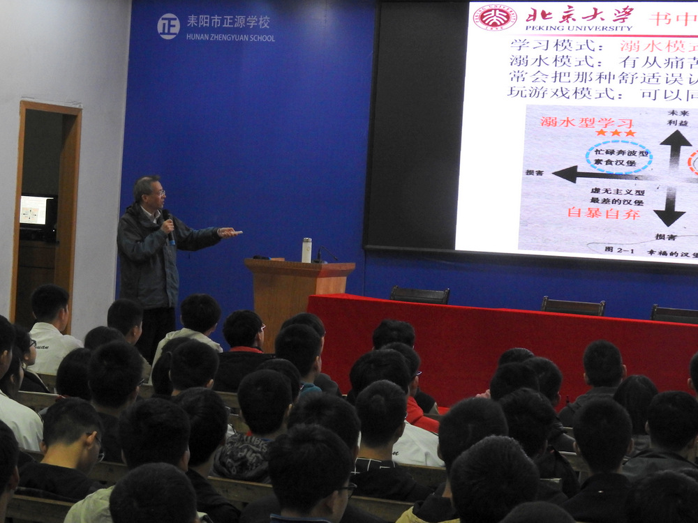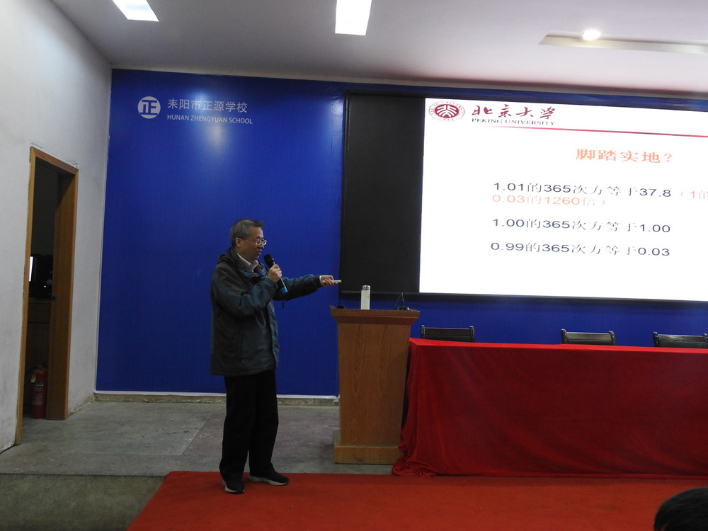 自2013年北大招生组走进正源以来,这已是肖教授第三次来到正源,肖教授表示自己对正源非常熟悉,看到同学们非常亲切,谈起在北大与钟芳蓉、匡雪梅一起吃饭的趣事,肖教授引用日本名句“只要努力就可以成功”,勉励同学们“你与学霸的差别,每天只差1%”,“每个人都可以成为学霸,所以要仰望星空”。