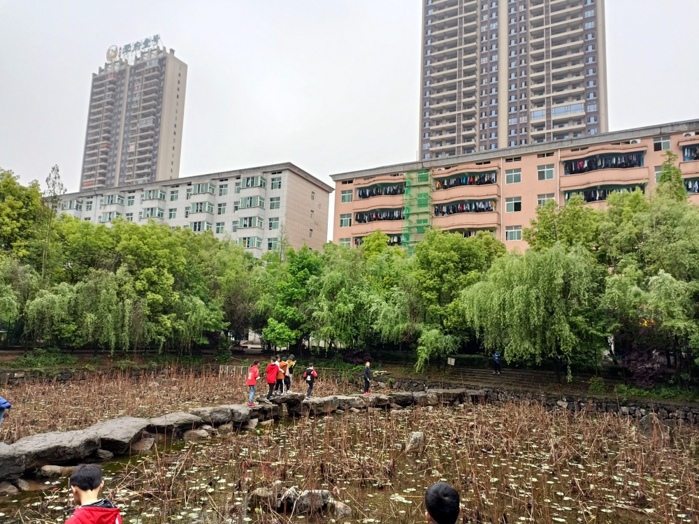 孩子们的世界简单、纯净,池塘边,假山上,小桥上,都成了孩子们游玩嬉戏的好场所。老师举起手机,把孩子们也当景拍。景美,人更美。