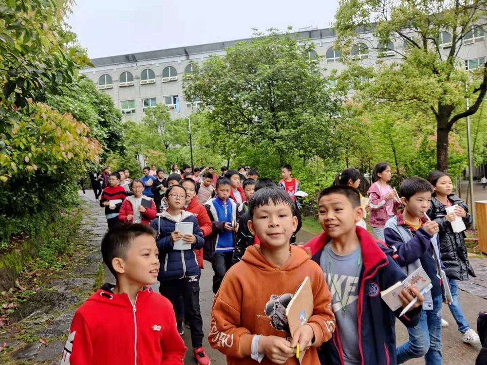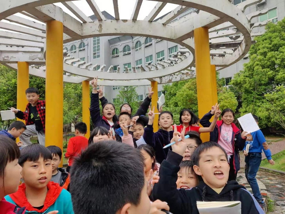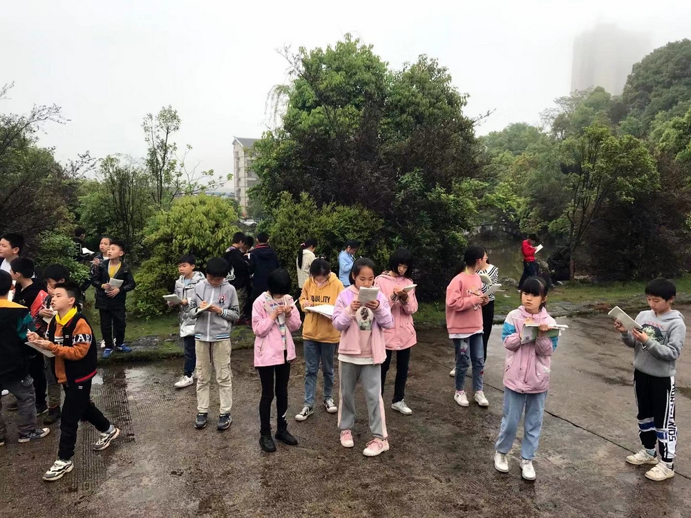 被“润物细无声”的春雨滋润过的校园到处处青葱。今天虽然烟雨蒙蒙,却丝毫不能消减正源五年级学生漫游校园的热情。