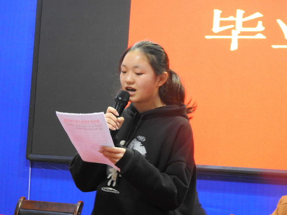 班主任代表王衡老师风度翩翩地走向主席台,作为专业老师,他的确给大家带来了一场“传媒盛宴”、“励志大餐”,全程精神饱满,声线富有穿透力,直击人心,让听者深深体会到了艺术的魅力!更让孩子们感动的,是王老师的赤子之心、励志之言:“在这里我代表所有班主任起誓:我们将铭记家长的重托,展示师德的光彩,彰显饱满的热情。我们会积极投入到初三的备考工作中,坚决不漏掉任何一个问题,不放弃任何一个学生。我们愿倾其所有,助你们扬帆远航。……作为艺术生,我们有艺术和文化的双重翅膀,想要飞得更高,更远,每一支翅膀都必须坚强有力!”
