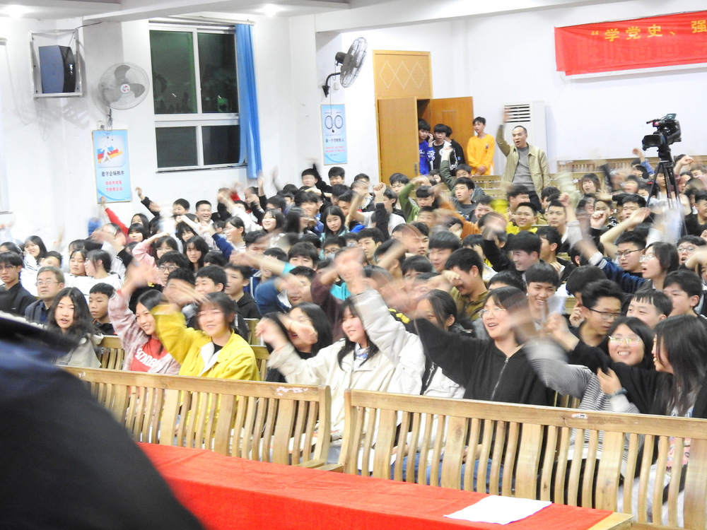 “我知道,我的未来不是梦,我认真地过每一分钟!”此刻,一首夺人心魄、催人奋进的歌曲骤然响起!音乐老师张鸣罡老师开始了他的表演。他用深情的领唱带领孩子们潜入艺术的氛围和对未来的憧憬。“所有的同学,把你们的右手借给我好吗?”徐主任也按捺不住心中的激情,拿起话筒,发出号令,引领台下的学生们一起挥舞着右手,吟唱着歌曲!报告厅,成了音乐的海洋、成了艺术的天堂、成了梦想的世界!