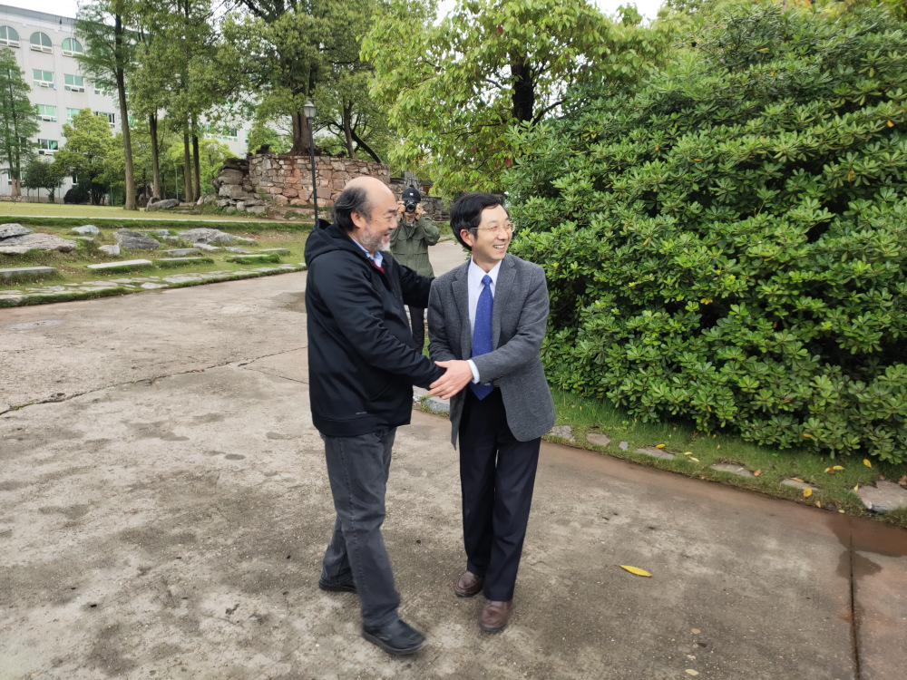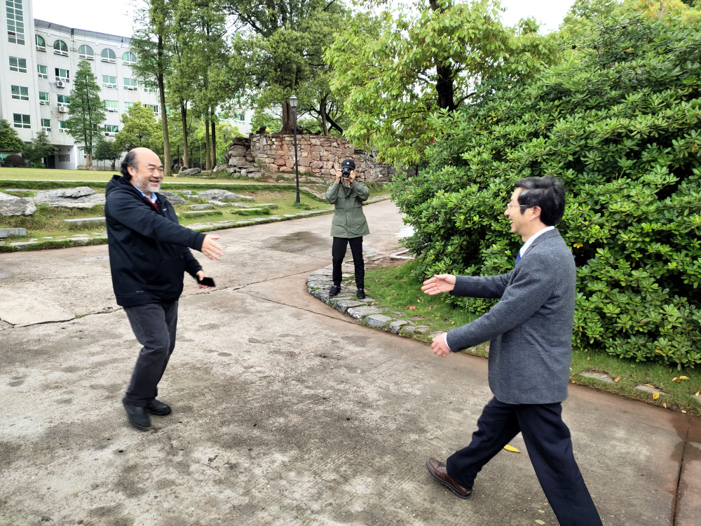 沿着绿树成荫的环校路,一路参观食堂、宿舍、教学楼,宾主边走边聊,相谈甚欢。