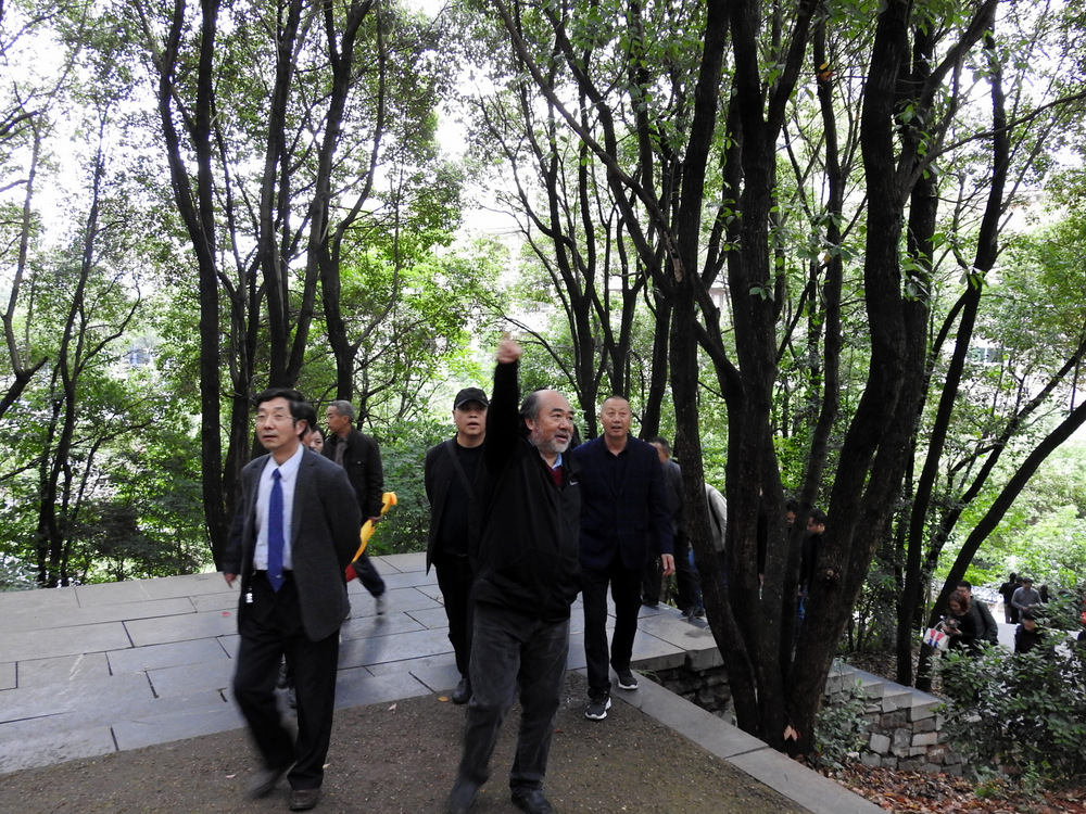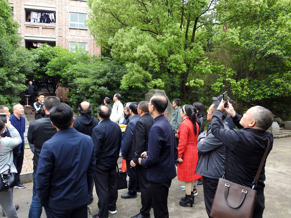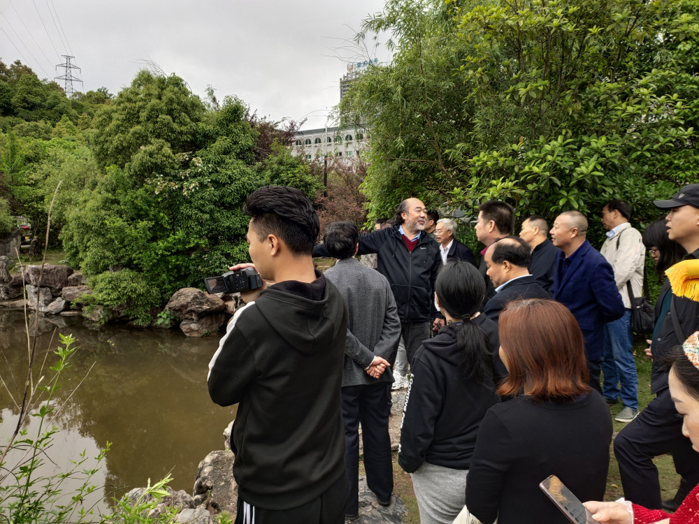 罗校长一边介绍学校创办初期的筚路蓝缕,一边讲解眼前“太极池”、“蟾蜍石”等景观妙手偶得的缘由,讲解“多栽培,少修剪”的校园布景与“顺其自然”的教育理念。