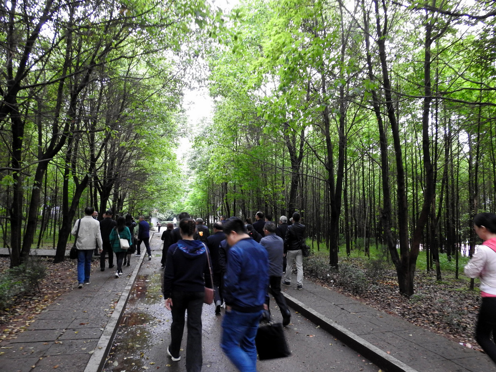 一进校门,客人们就被眼前如诗如画的校园美景所吸引,驻足在小桥流水的池塘边,面对郁郁葱葱的东山、西山,客人们由衷赞叹:“有山有水,这才是正宗的风水宝地。”