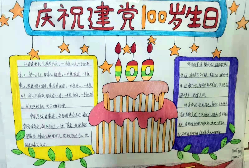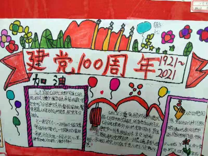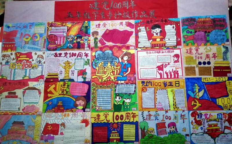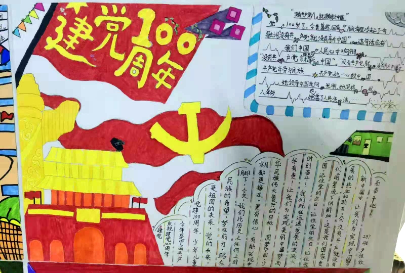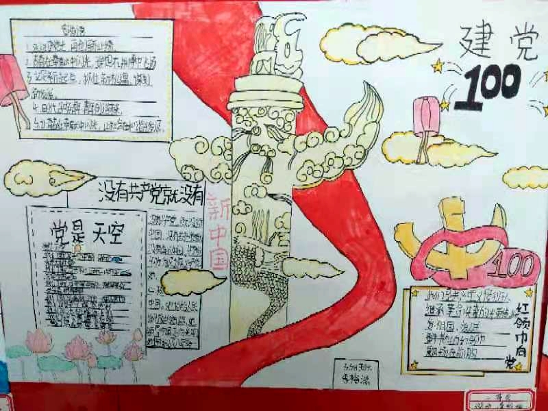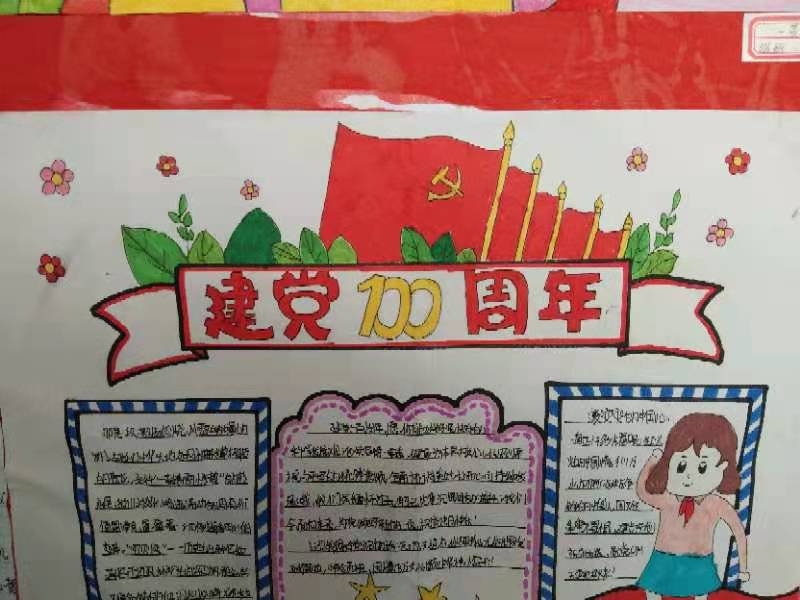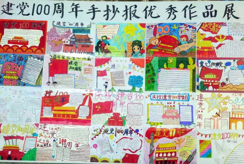 同学们利用假期,收集整理了有关中国共产党的发展史和奋斗史等党史资料,通过工整的文字、精美的图画等多种形式进行手抄报创作,颂扬中国共产党的丰功伟绩。