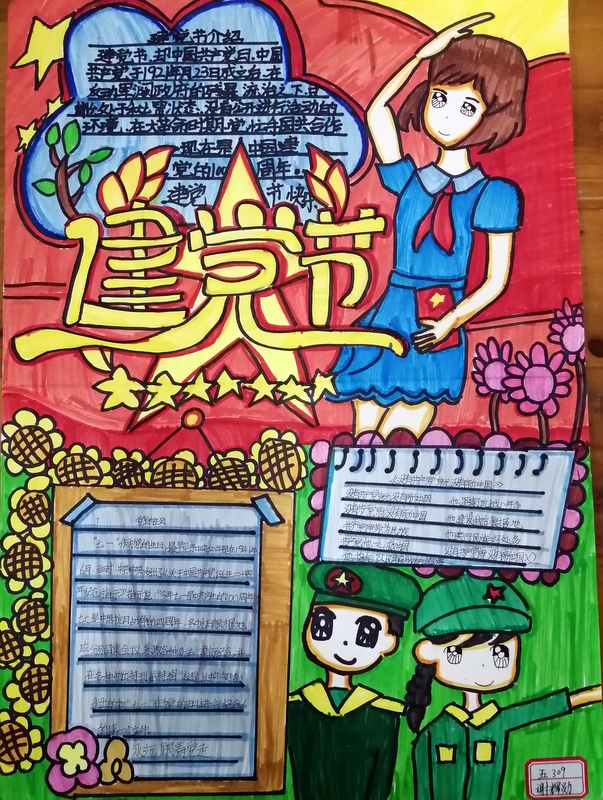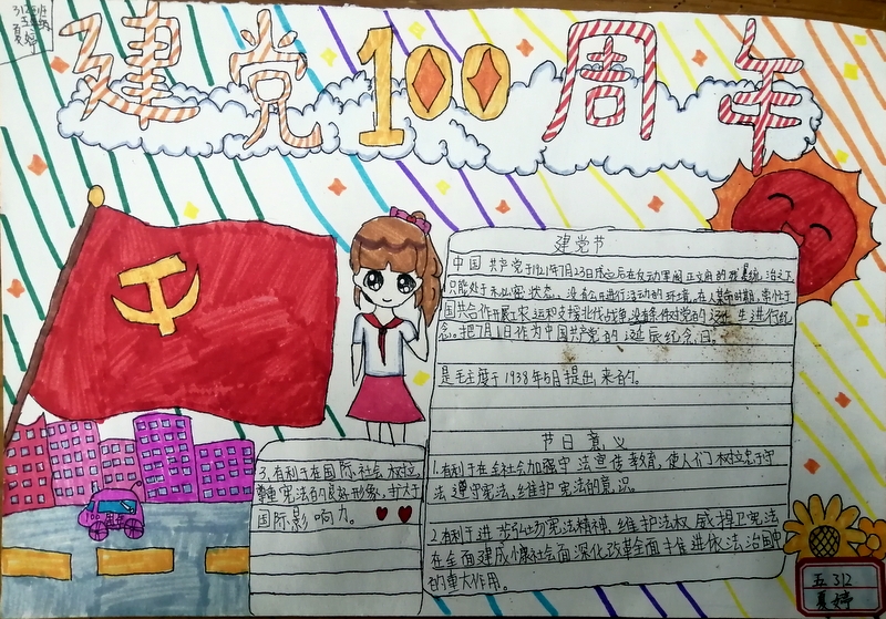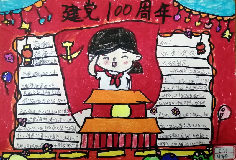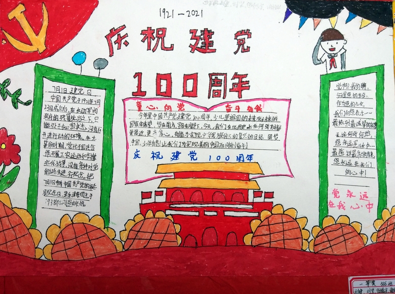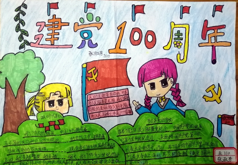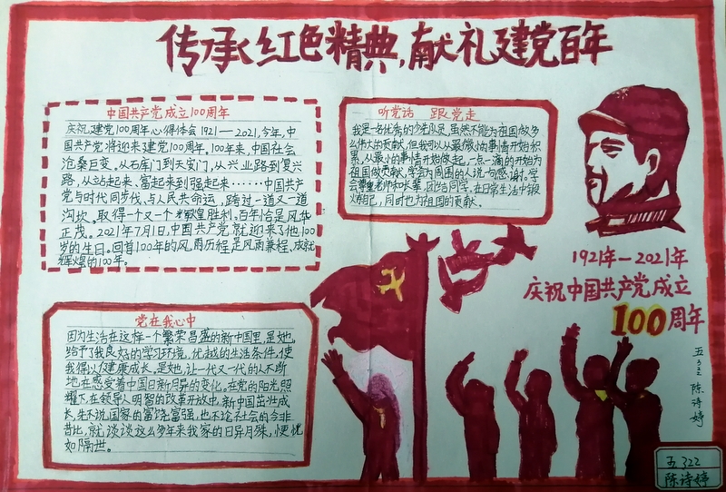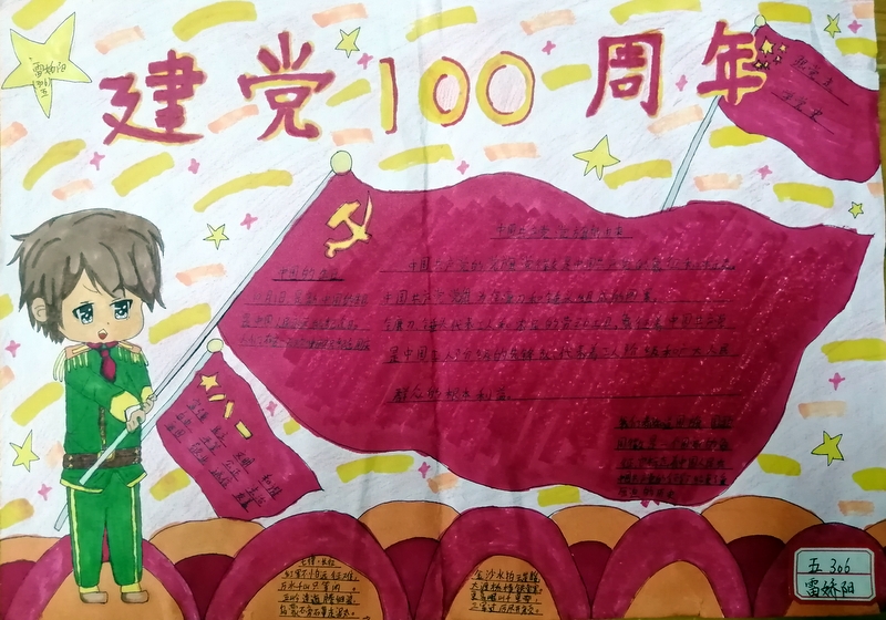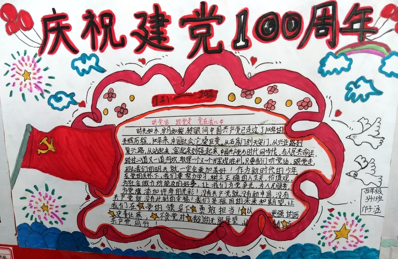 同学们利用假期,收集整理了有关中国共产党的发展史和奋斗史等党史资料,通过工整的文字、精美的图画等多种形式进行手抄报创作,颂扬中国共产党的丰功伟绩。