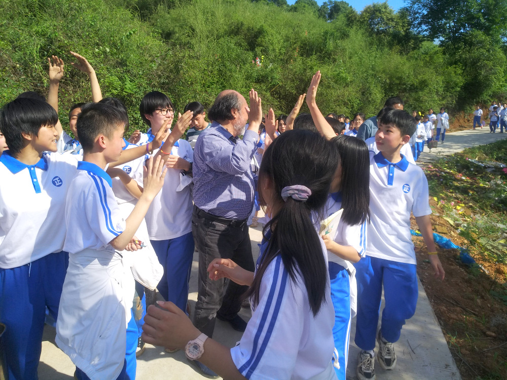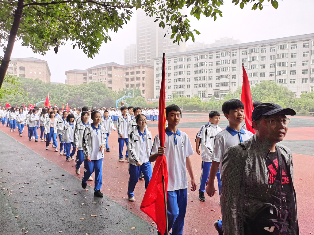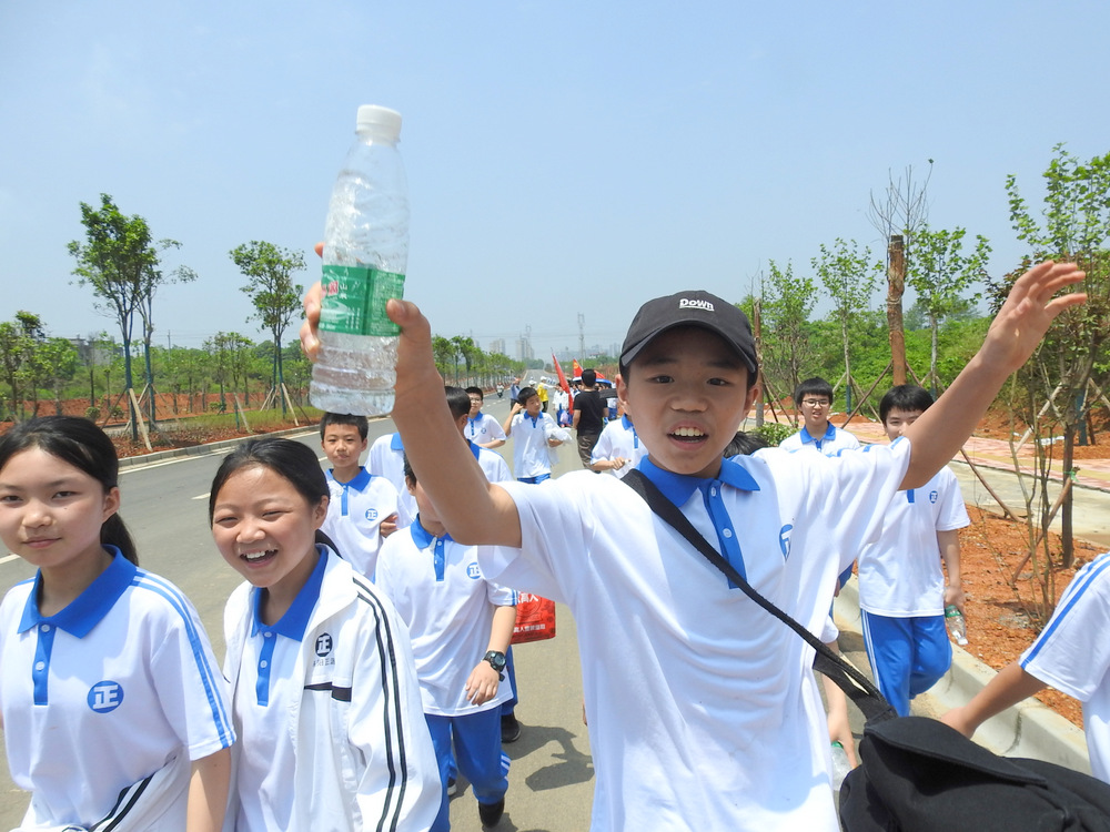 罗校长过来给大家鼓劲了,“”你们是国际班,要走遍天下,要仗剑走天涯的呢,加油加油!”看到前面整理队形的同学们面有疲色,罗校长又跑上去给大家逗趣“”正源教育国际化,我们报数也要国际化嘛……”同学们一扫疲态,兴致勃勃地用英语报数整队,精神抖擞昂首向前。