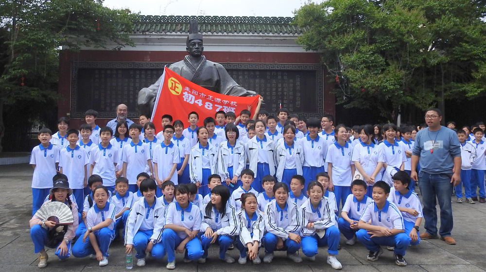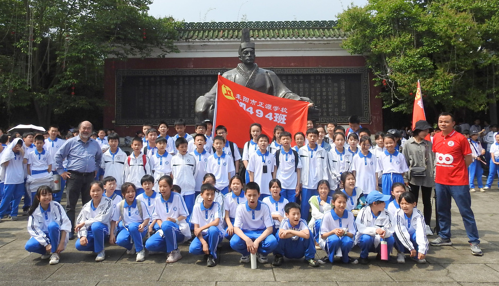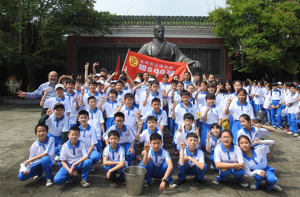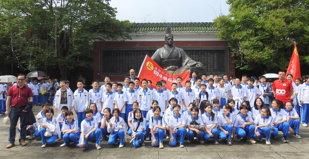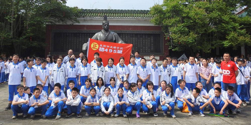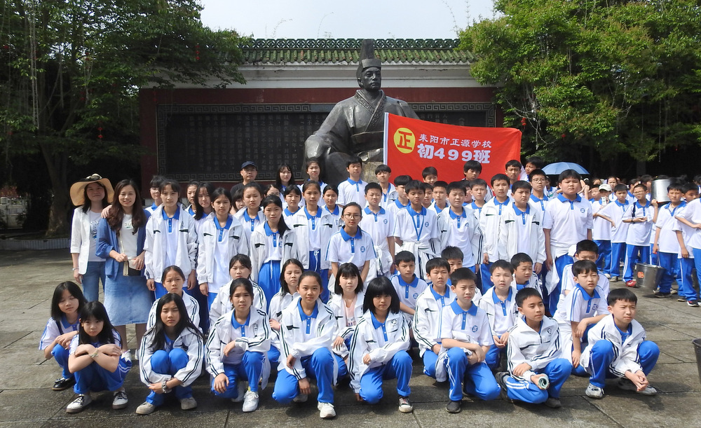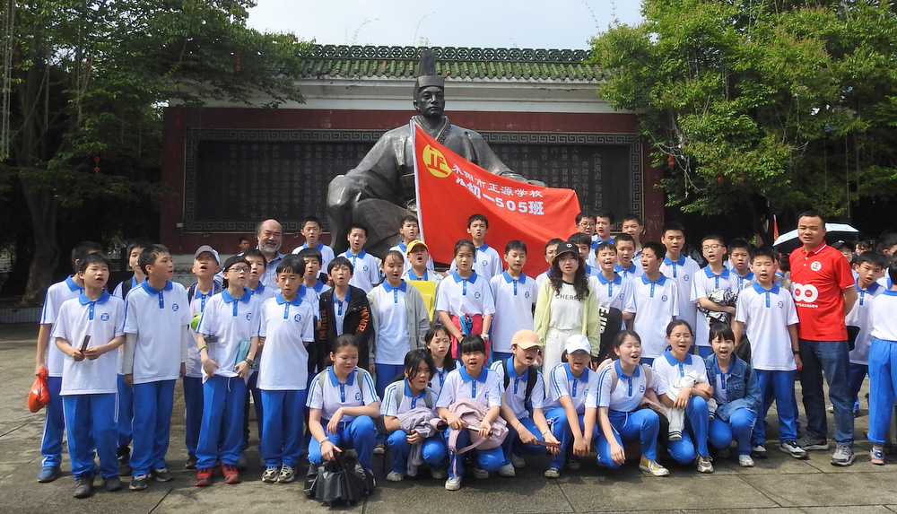 “9898,胸怀天下,敢打敢拼,走遍天涯!Go!”4月29日上午10:00,蔡伦公园里人声鼎沸。着装整齐的正源学子正以班集为方阵,在蔡伦铜像前和校长合影。同学们一边欢快地挥舞手臂,一边欢呼着校长给他们现场编排的口号。跟同学们打成一片的罗校长,正开心得像个孩子一样,手舞足蹈地跟同学们畅聊:“我们中国人最厉害了,不仅能说好中文,还能说好英文,所以我们要胸怀天下,要敢打敢拼,要走遍天涯…”这是正源准初一年级远足活动的第一站。1200名准初一学生,9:00从正源校园出发,沿着联络线、德泰隆路、群英路、人民路一路步行过来,参观完蔡伦纪念园,还要远足到鹿岐峰,去野炊,去爬山,去亲近自然。来回50里的远足路程,对于十一二岁的孩子而言,自然是一种挑战。连日的阴雨,好不容易盼来了晴天,为了避免同学们在远足前夕兴奋得睡不着觉,远足的消息是早上起床的时候公布的。正如清晨出发前动员大会上校长所言:“我们跟别的学校不一样,正源的孩子崇尚的是新三好,吃好,睡好,跑好”,“准初一跟别的年级不一样,你们读完五年级就学习初中课程,准高一又能提前一年学习高中课程,有更多时间从容学习,初中高中都能学得更扎实”,“敢打敢拼敢为人先,就是要做别人没做过的事,做别人不敢做的事”。别具一格的正源教育,挑战自我的50里远足,必将成为孩子们难忘的记忆。