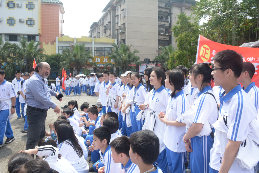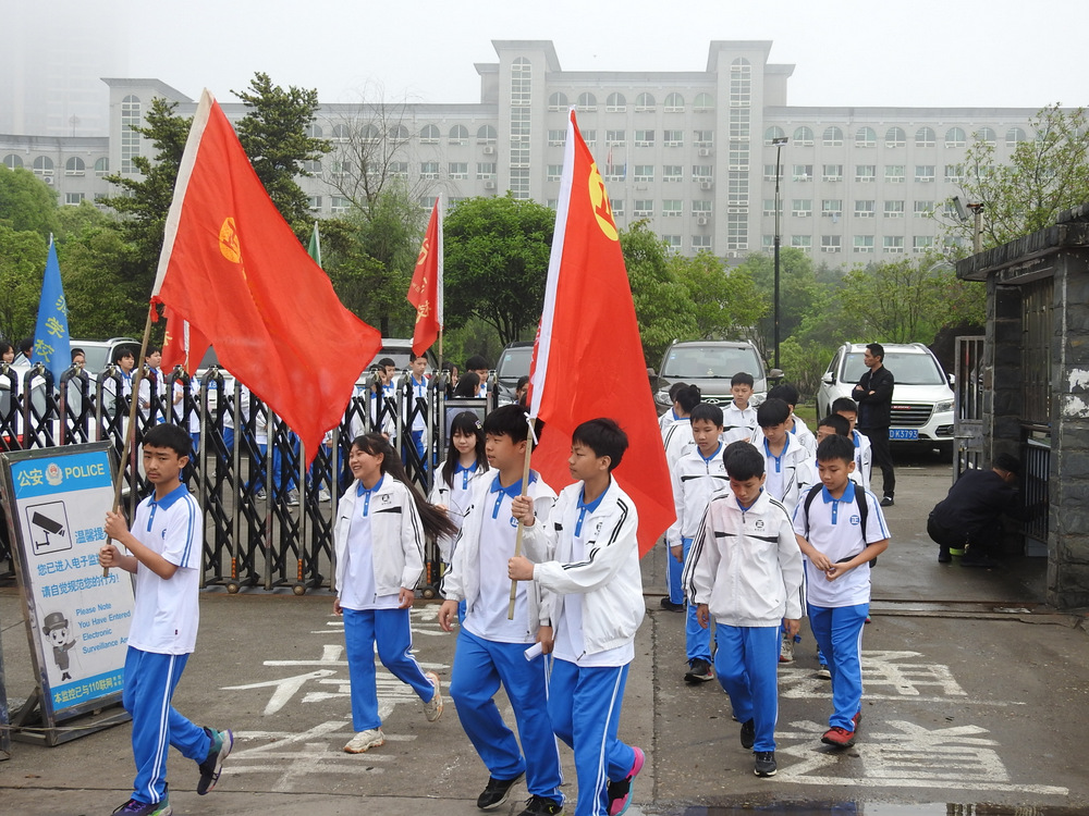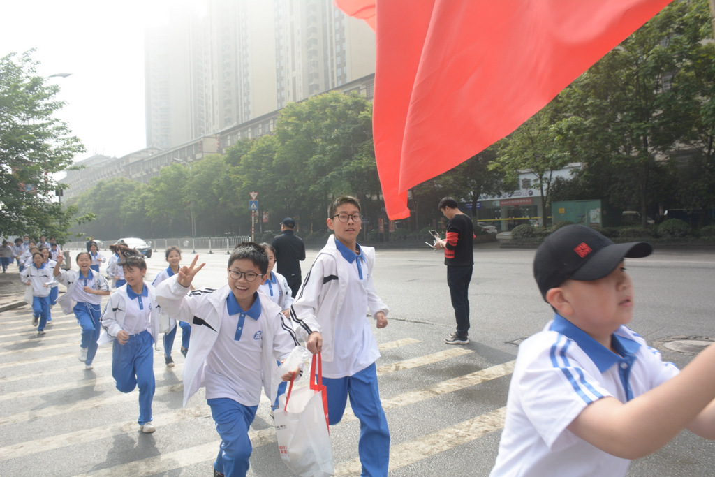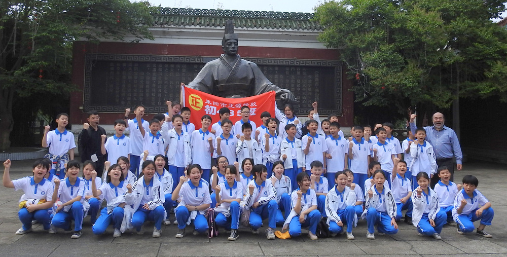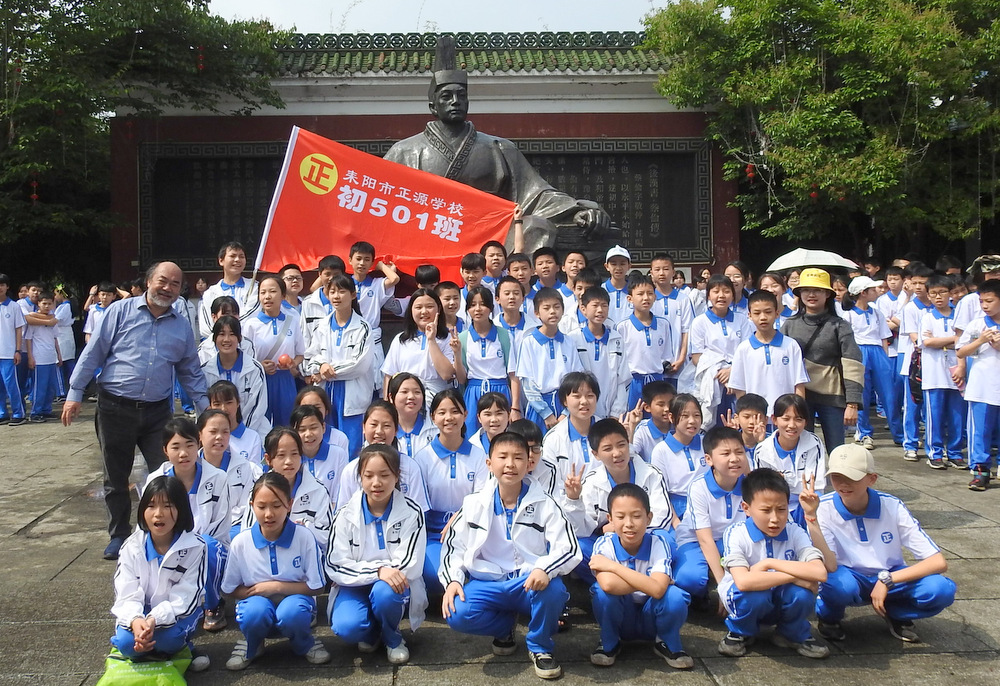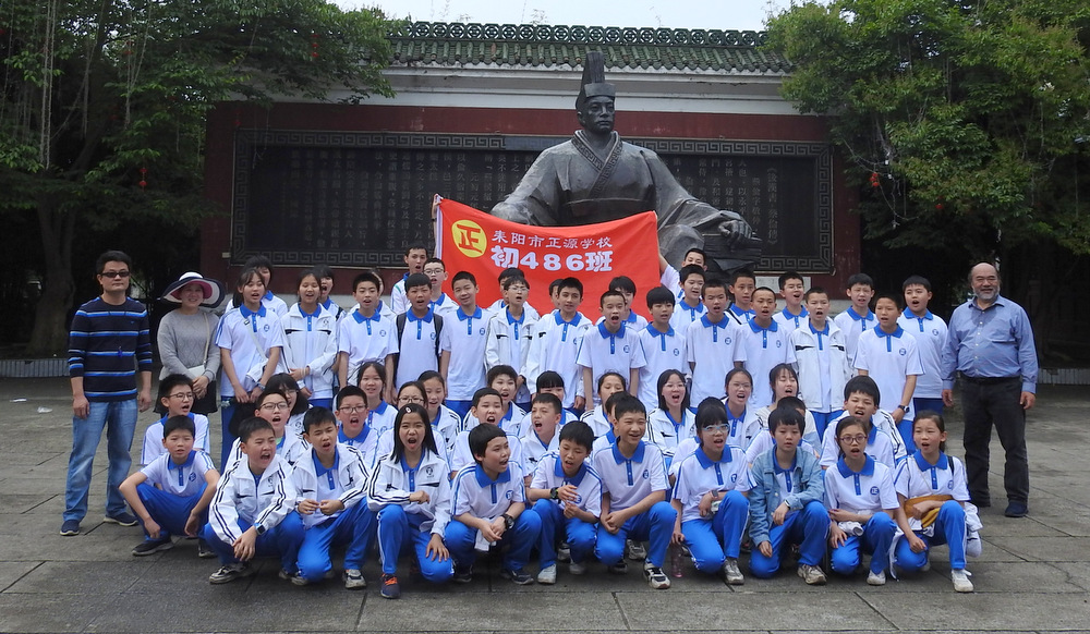 “9898,胸怀天下,敢打敢拼,走遍天涯!Go!”4月29日上午10:00,蔡伦公园里人声鼎沸。着装整齐的正源学子正以班集为方阵,在蔡伦铜像前和校长合影。同学们一边欢快地挥舞手臂,一边欢呼着校长给他们现场编排的口号。跟同学们打成一片的罗校长,正开心得像个孩子一样,手舞足蹈地跟同学们畅聊:“我们中国人最厉害了,不仅能说好中文,还能说好英文,所以我们要胸怀天下,要敢打敢拼,要走遍天涯…”这是正源准初一年级远足活动的第一站。1200名准初一学生,9:00从正源校园出发,沿着联络线、德泰隆路、群英路、人民路一路步行过来,参观完蔡伦纪念园,还要远足到鹿岐峰,去野炊,去爬山,去亲近自然。来回50里的远足路程,对于十一二岁的孩子而言,自然是一种挑战。连日的阴雨,好不容易盼来了晴天,为了避免同学们在远足前夕兴奋得睡不着觉,远足的消息是早上起床的时候公布的。正如清晨出发前动员大会上校长所言:“我们跟别的学校不一样,正源的孩子崇尚的是新三好,吃好,睡好,跑好”,“准初一跟别的年级不一样,你们读完五年级就学习初中课程,准高一又能提前一年学习高中课程,有更多时间从容学习,初中高中都能学得更扎实”,“敢打敢拼敢为人先,就是要做别人没做过的事,做别人不敢做的事”。别具一格的正源教育,挑战自我的50里远足,必将成为孩子们难忘的记忆。
