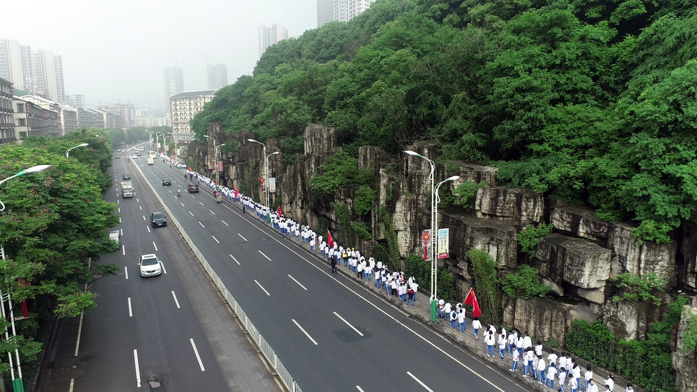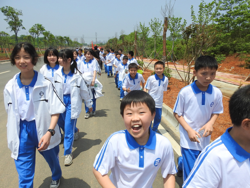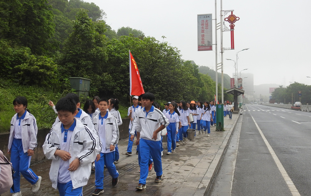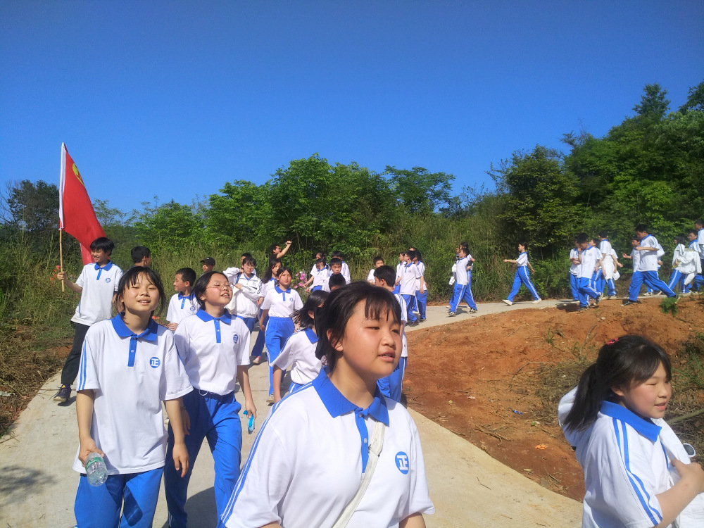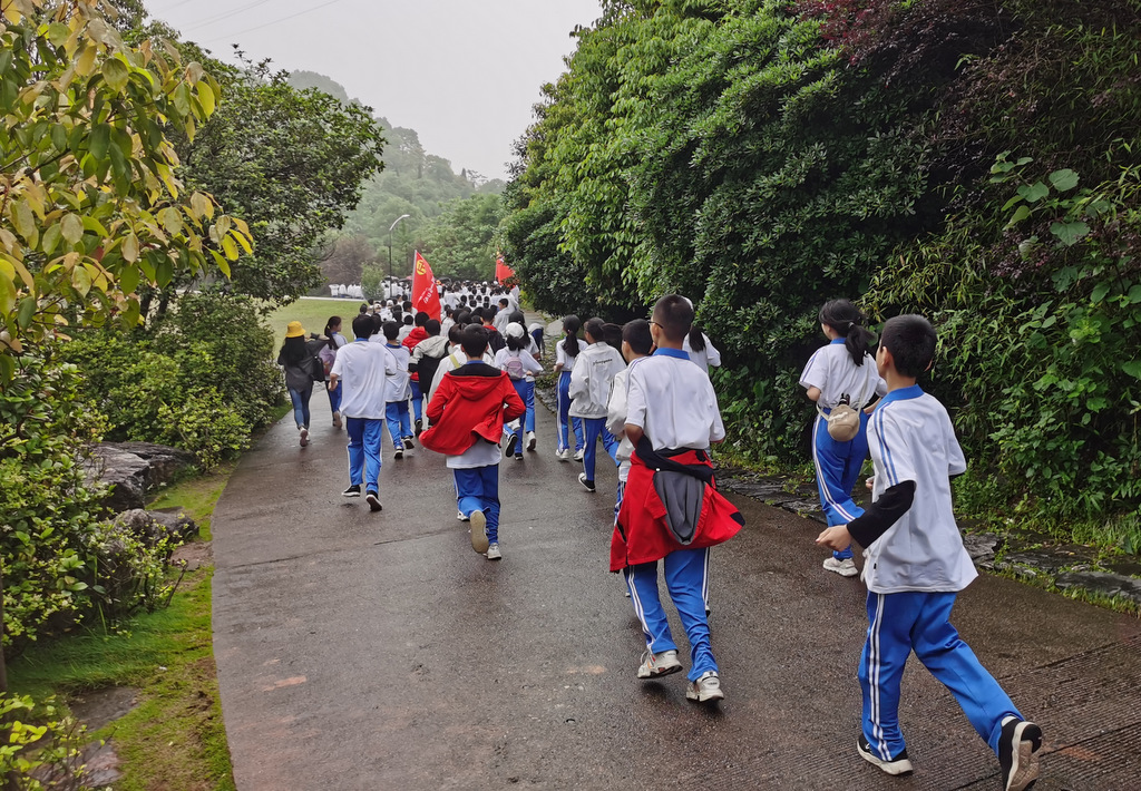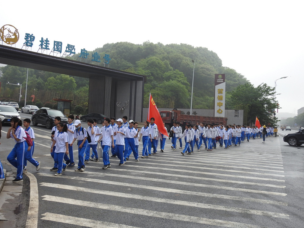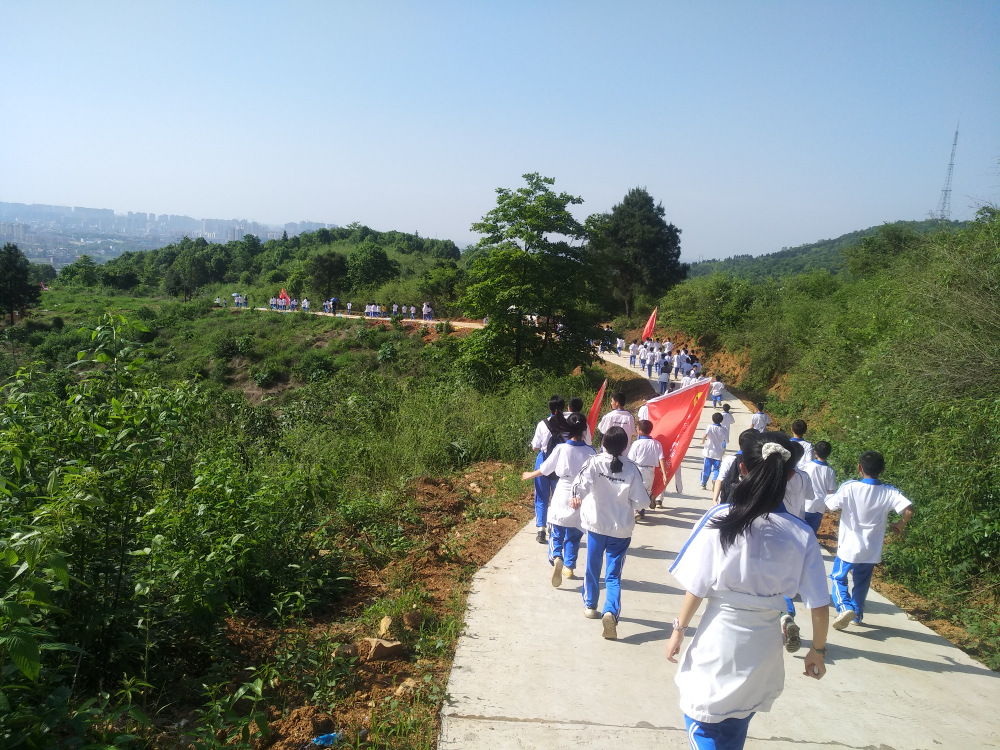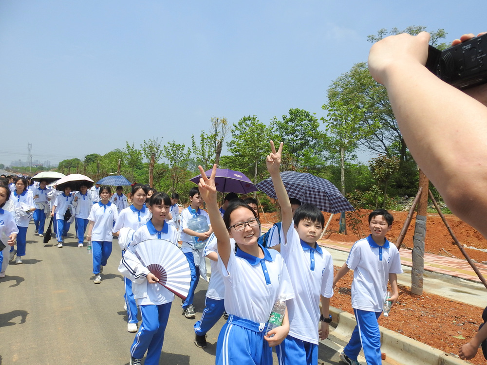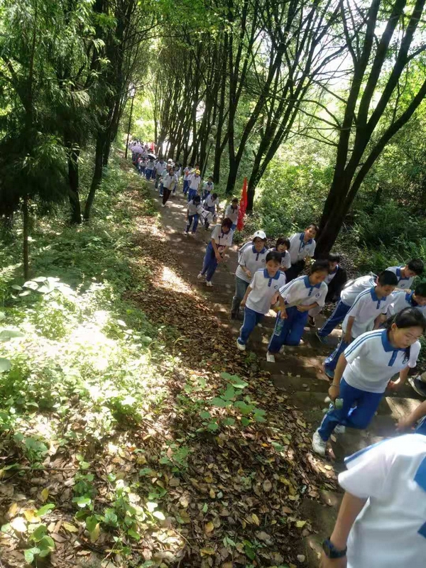 告别蔡伦公园,浩浩荡荡的队伍继续挺进鹿岐峰。许是得益于每天的“一日两千,一生康健”跑操锻炼,许是被沿途各种新鲜事物所吸引,二十多里的路程,多数同学不仅不觉得辛苦,还一路蹦蹦跳跳,轻松惬意。