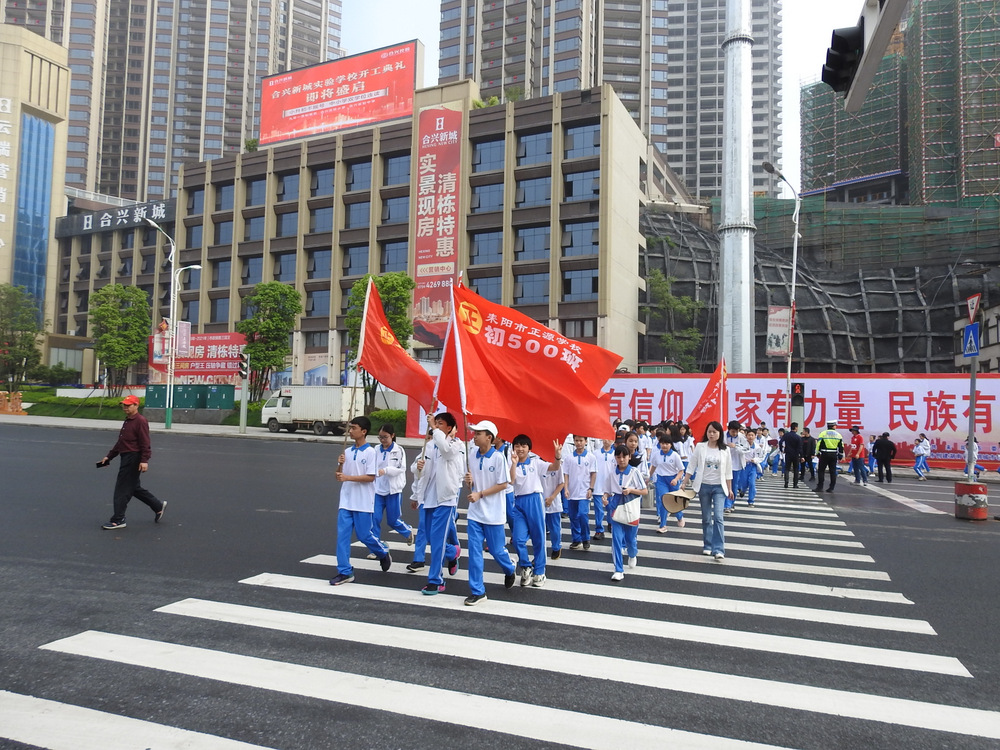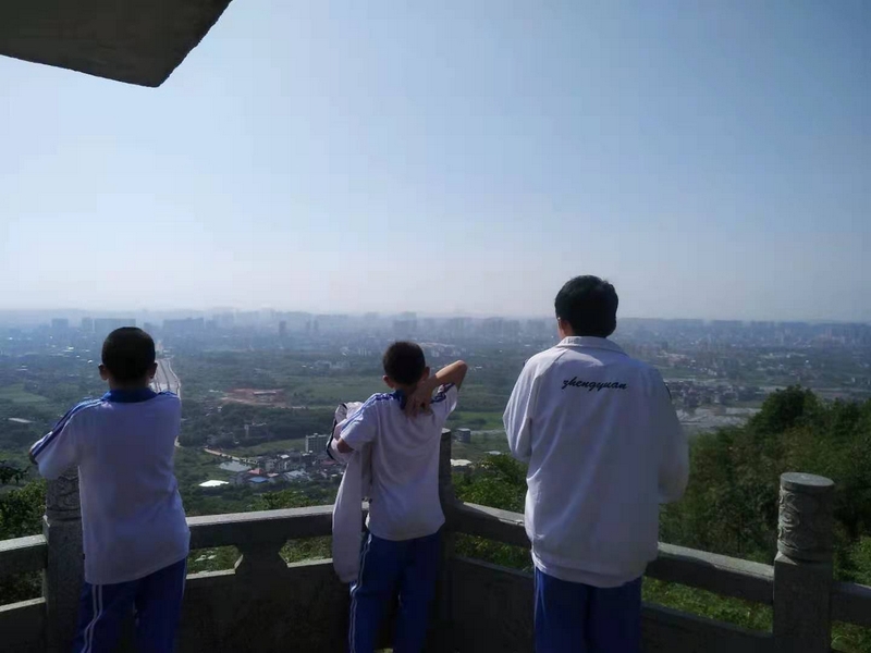 歌声在山风里飘荡,豪情在阳光下绽放。同学们再接再厉,互相搀扶着登顶最高峰。短暂休整后,穿过电视塔,翻过山麓,沿着水东江市场、耒阳大桥继续步行二十多里返回学校。
