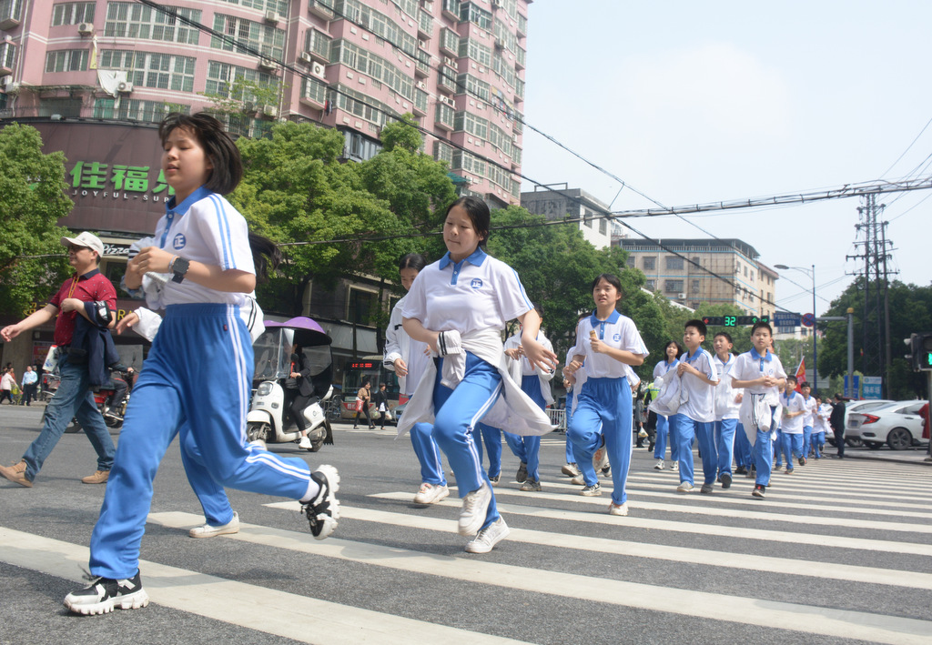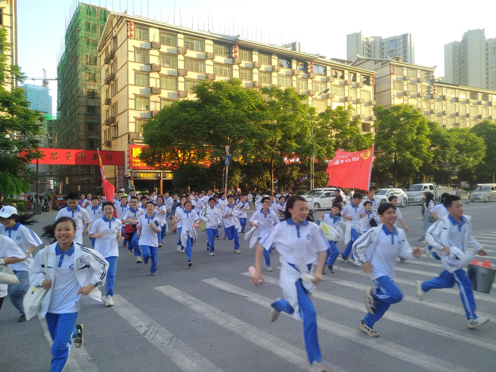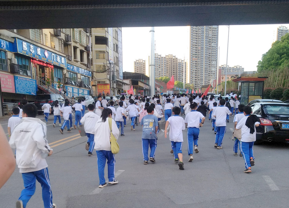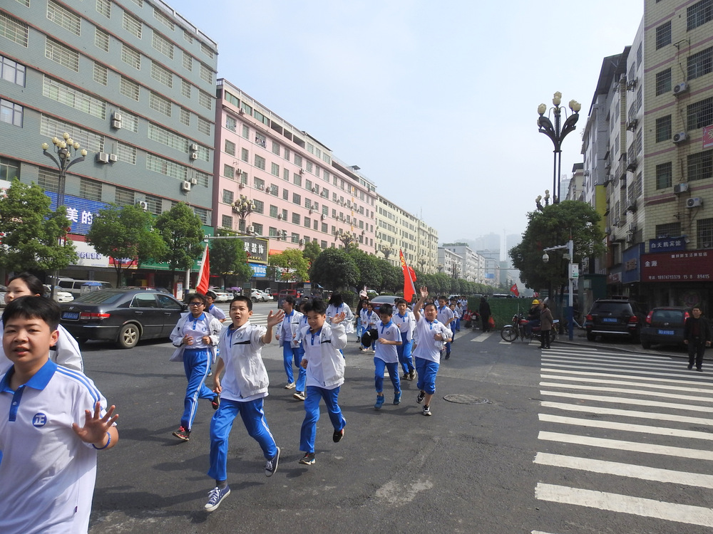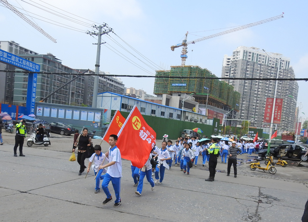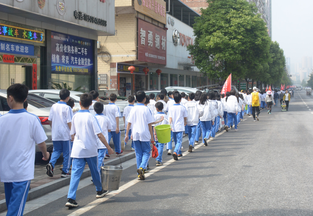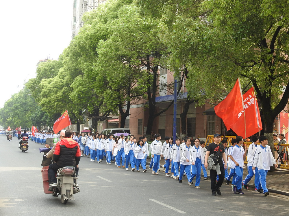 经过群英南路,转过和谐南苑,通过鹿岐峰大桥,已是正午时分,高照的艳阳早已驱散连日的阴霾,火辣辣地照射着地面。同学们开始擦拭额头的汗珠,脚步也渐渐变得沉重。