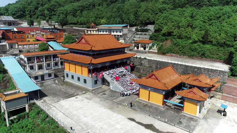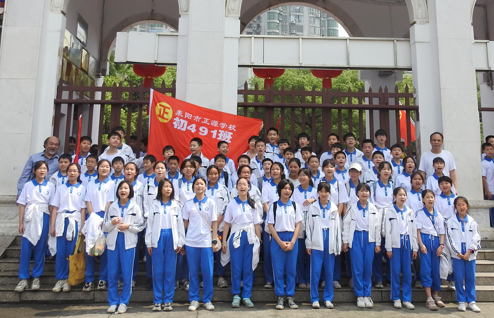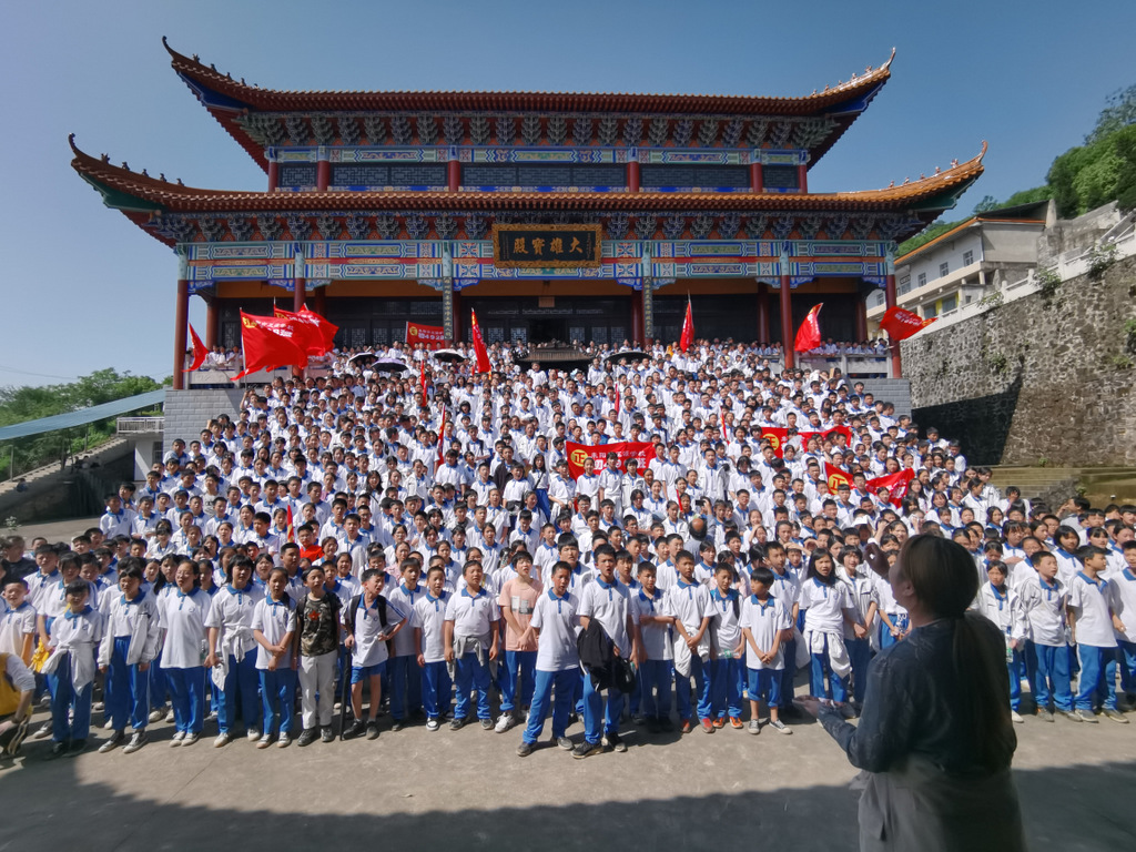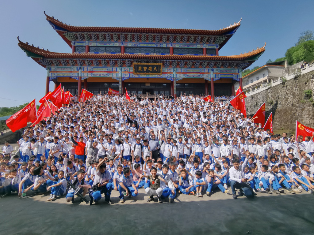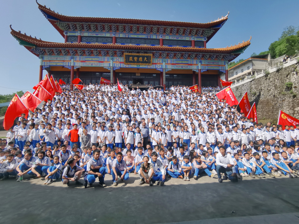 须臾之间,巍峨的大雄宝殿台阶上,班旗迎风招展,立满了意气风发的白衣少年。在罗校长的倡议下,1200多师生齐声歌唱《我和我的祖国》,尽情欢呼:“正源正源,世外桃源,敢打敢拼,敢为人先!”