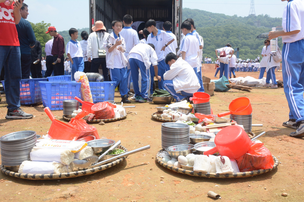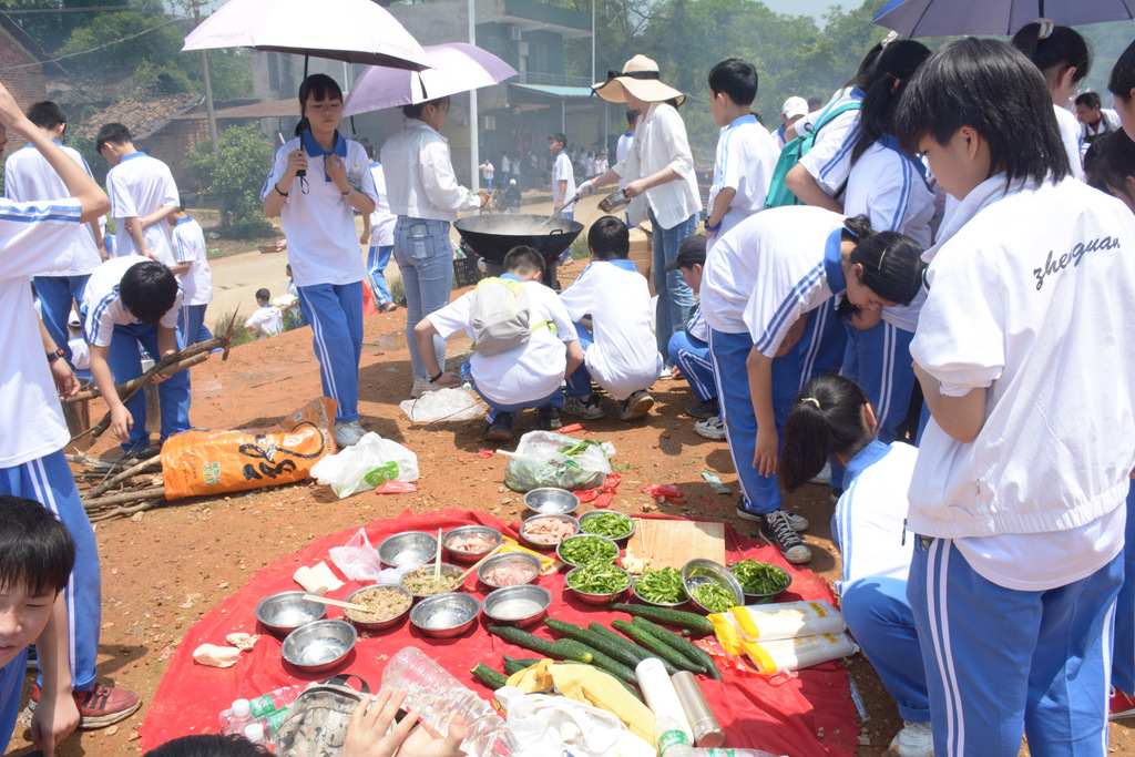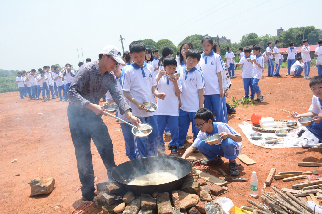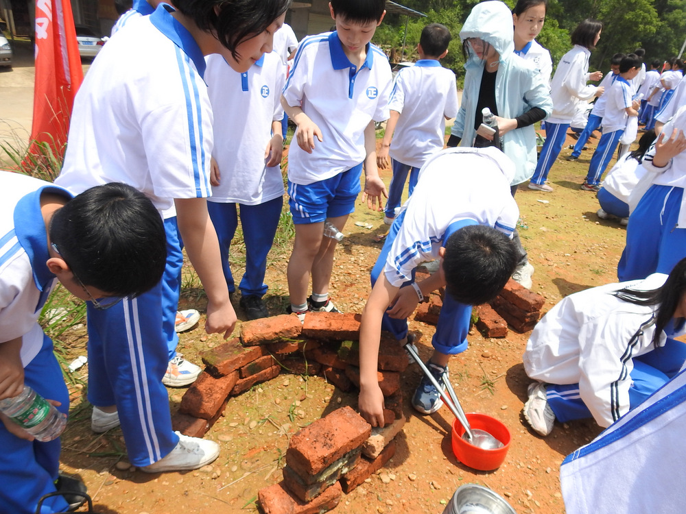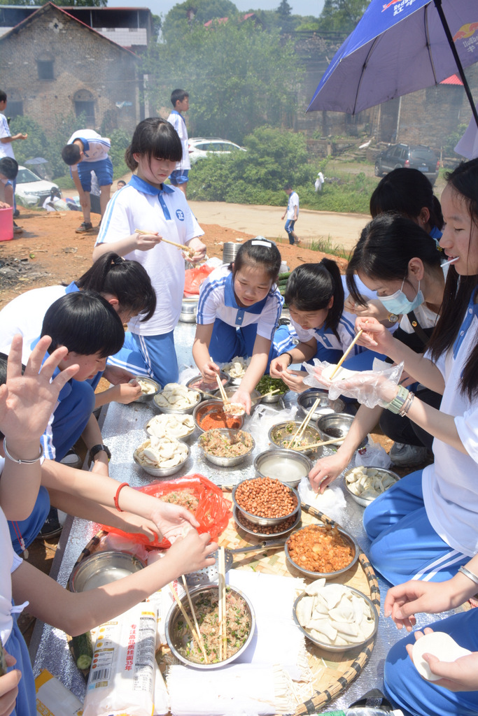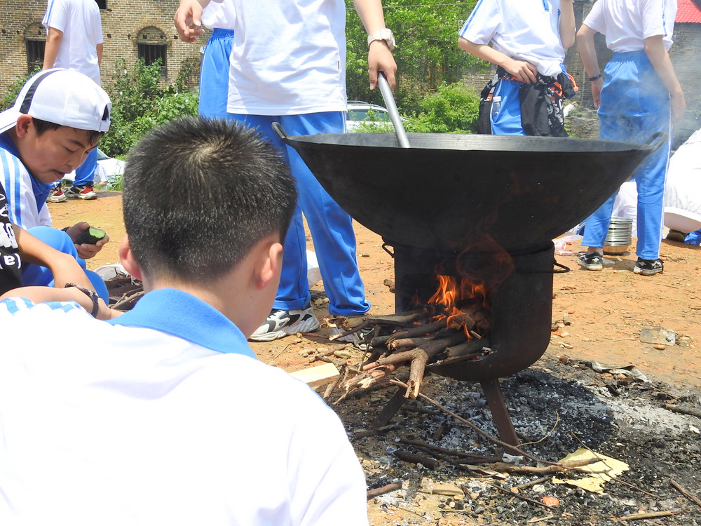 22个班级散落在营地四周,大家兴高采烈地忙碌起来。男生搬砖、垒灶、打水,女生们刷锅、洗菜、包饺子,班主任生火、烧水、下调料。一阵忙碌过后,炊烟缕缕升起,香味阵阵飘来,饺子、面条纷纷出锅。自己的劳动成果,自然是格外香甜,一边大汗淋漓,一边狼吞虎咽,大快朵颐的同时还不忘互相竖起大拇指:“超级好吃!”