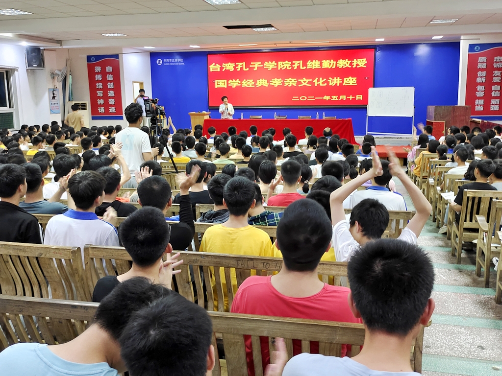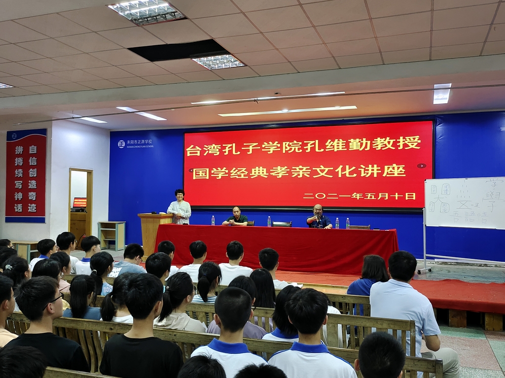 孔维勤教授,孔子第78代后裔、台湾孔子协会理事长、台湾孔子学院院长,潜心研习儒学,精通周易,致力于传播孔子思想、弘扬传统文化、促进两岸学术交流。2016年在中国社科院、湖南省文联主办的“中国(耒阳)罗含文化学术研讨会”发表论文《罗含<更生论>初探》,并亲赴罗含故里与来自全国的17位专家学者研讨交流。2016年研讨会期间,孔教授第一次参观正源学校,从堪舆学角度评价正源校园“背靠青山、前临耒水,天庭明堂、上应天光,左有青龙宝塔、右拥一城繁华”,盛誉正源“是一块不可多得的风水宝地”。本次正源之行,是孔教授时隔五年之后的第二次到访。