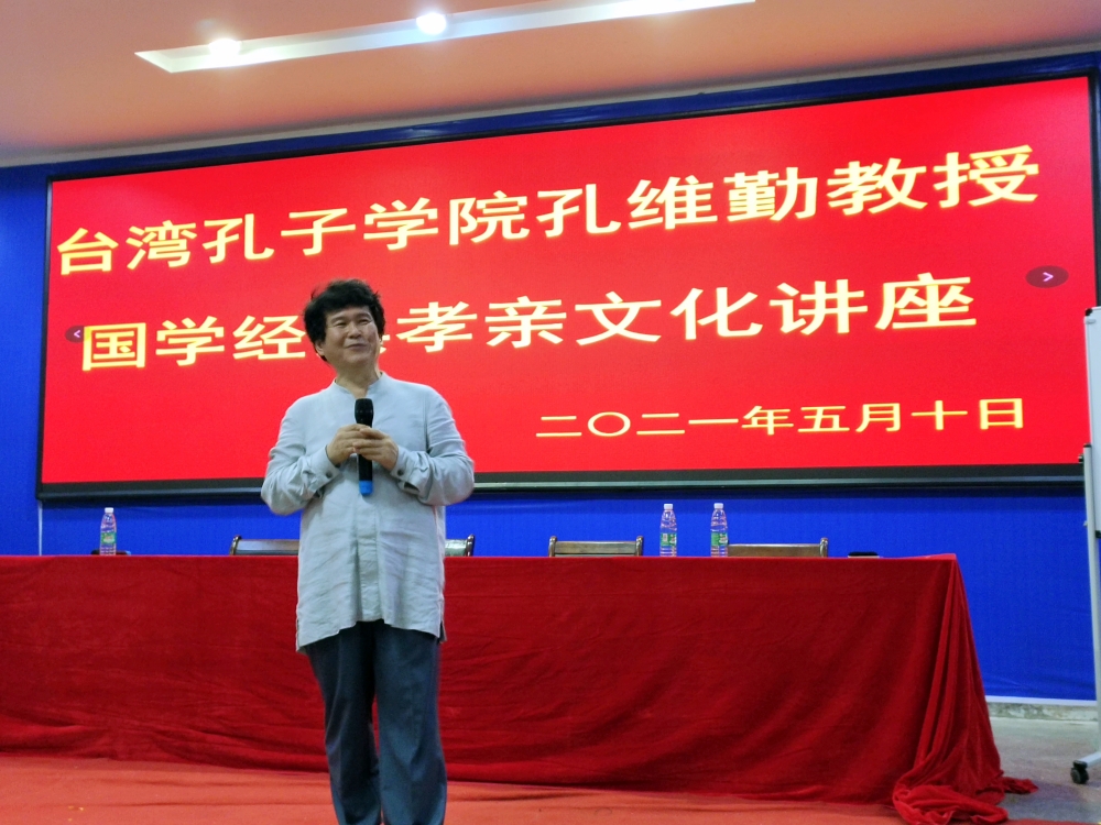 5月10日,台湾孔子学院院长孔维勤教授到访耒阳罗含文化研究会,赴龙归山实地考察,并到正源学校走访讲学,开展“国学经典孝亲文化”讲座。