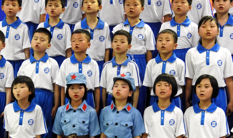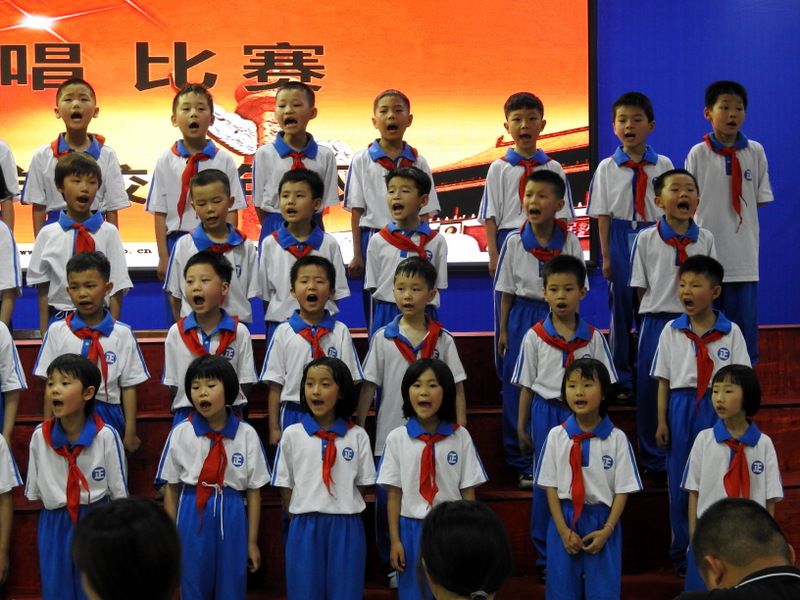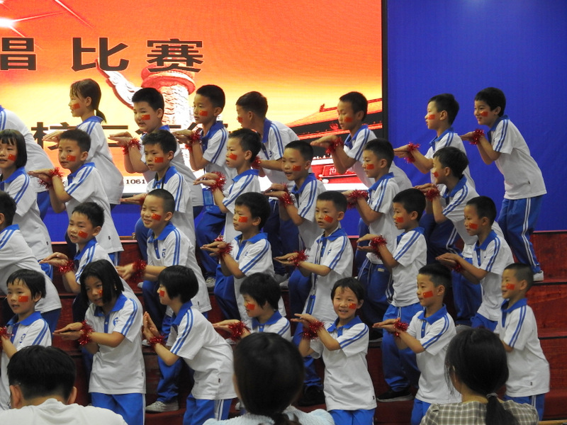 我们少年儿童沐浴在党的阳光下茁壮成长。我们欢呼我们歌唱,我们唱出幸福的心声。374班同学用《祖国祖国多美丽》赞扬了我们中国人的尊严。