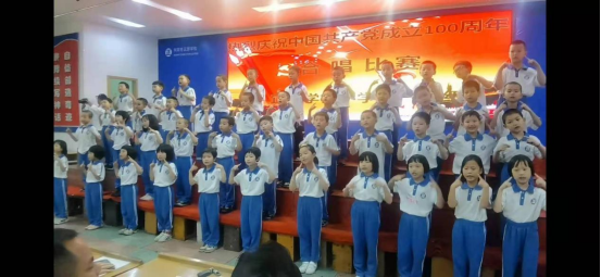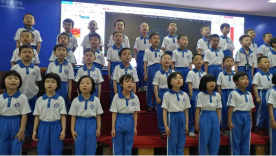 5月9日下午,小学部一年级同学举行了“唱响经典红色歌曲、献礼建党一百周年”合唱比赛。本次比赛以班级为单位,每班唱两首歌曲,其中必唱歌曲为《没有共产党就没有新中国》,另一首为选唱歌曲,班级自己定。