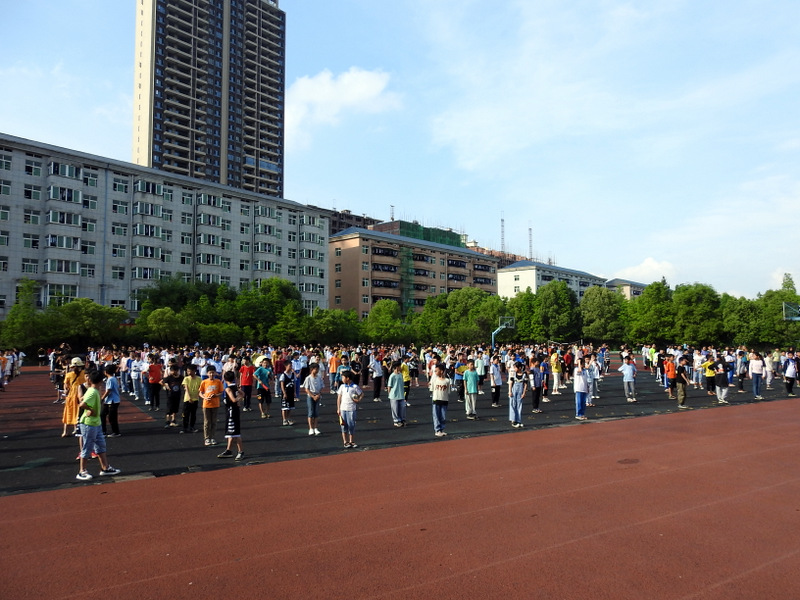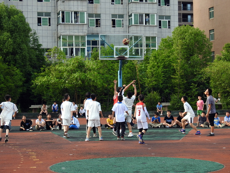 开幕式后,六年级举行了两场淘汰赛。主席台左边300班vs301班,右边299班vs302班。