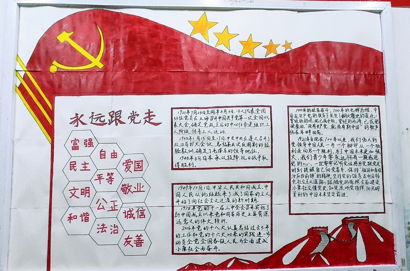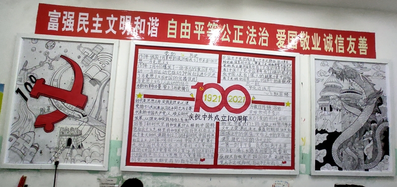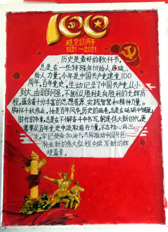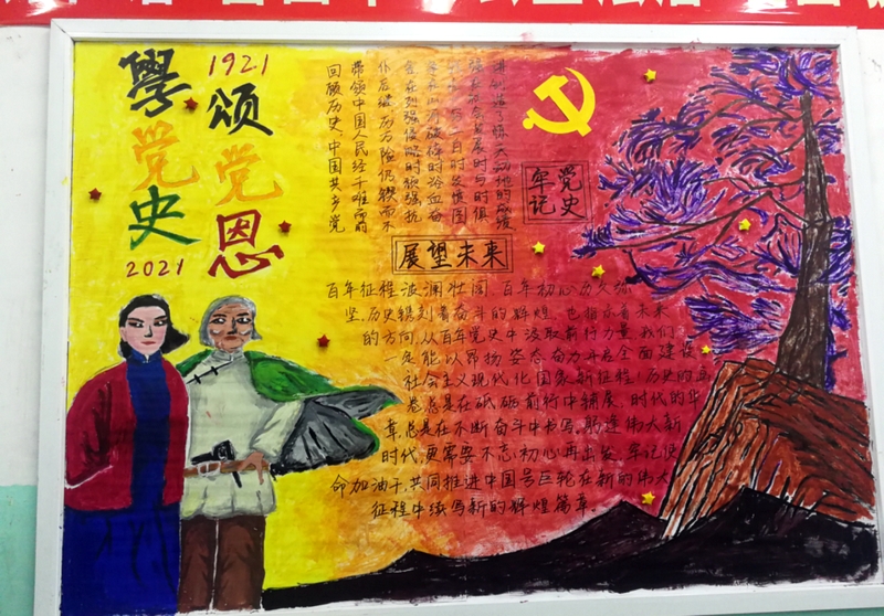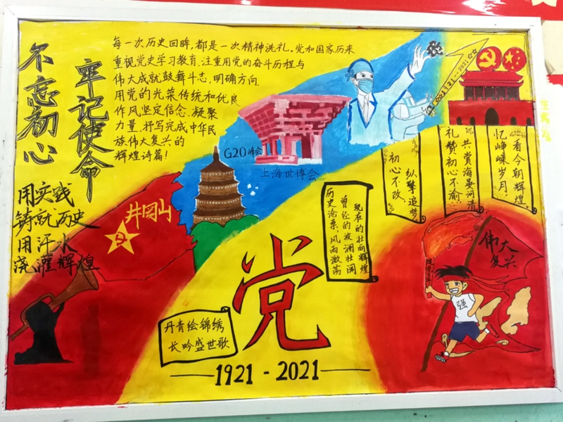 十多天的绘制过程中,同学们用画笔展现党的光辉历史,讴歌党的辉煌业绩,抒发自己对党和祖国的热爱,用画卷献礼建党一百周年,用行动将“学党史,知党情,感党恩,跟党走”落到实处。
