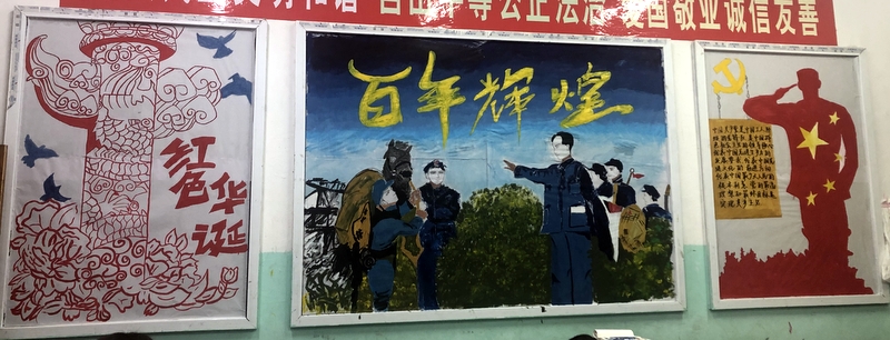 音乐课和晚自习,激扬奋进的革命歌曲在教室和广场反复传唱,此起彼伏。美术课及课间休息,彩笔在同学们手头灵动挥洒,色彩斑斓。