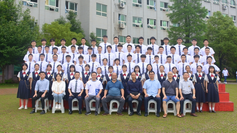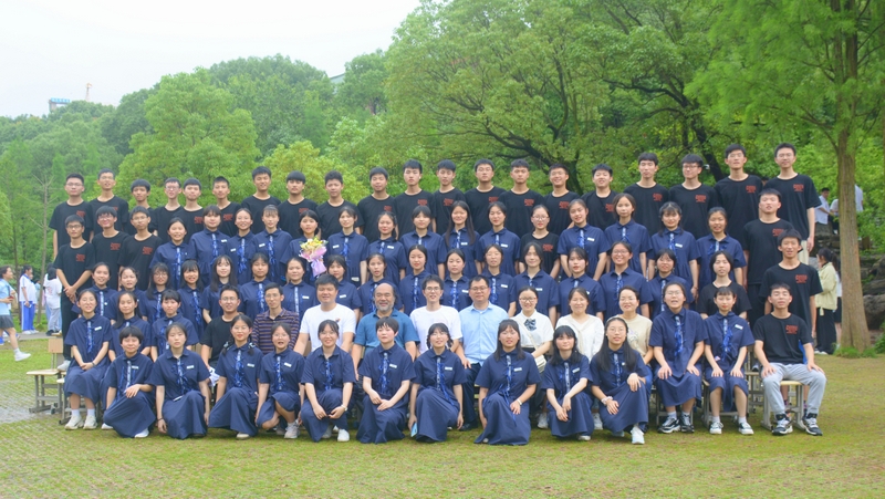 广场西侧的两个合影梯台早已布置就绪,一阵阵欢声笑语传来,一声声“茄子”喊响,罗校长像个吉祥物一样在两个梯台前来回奔波,与每个班级同学、老师合影留念。