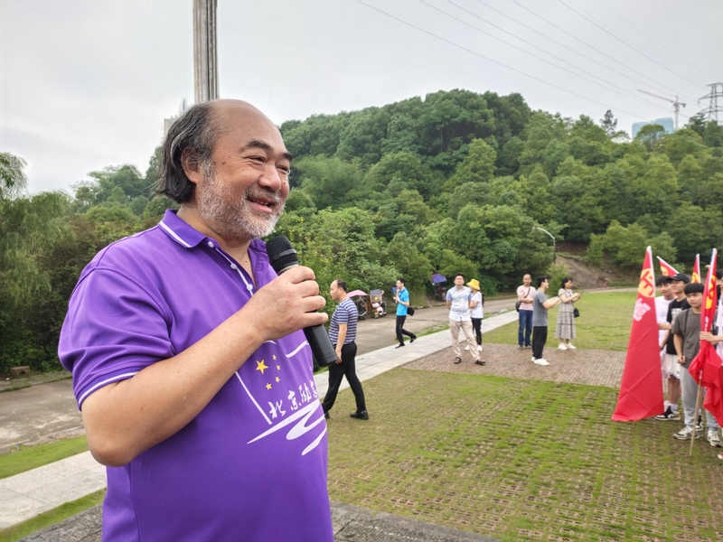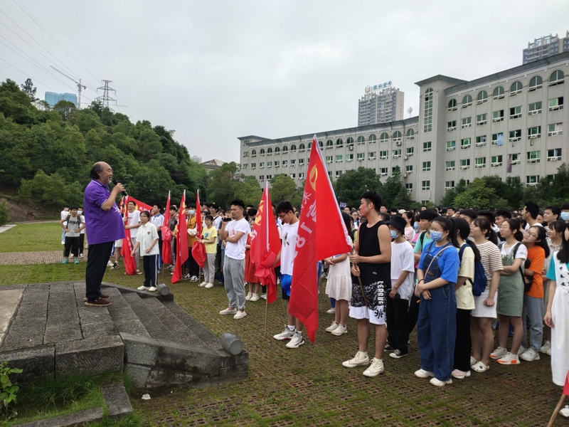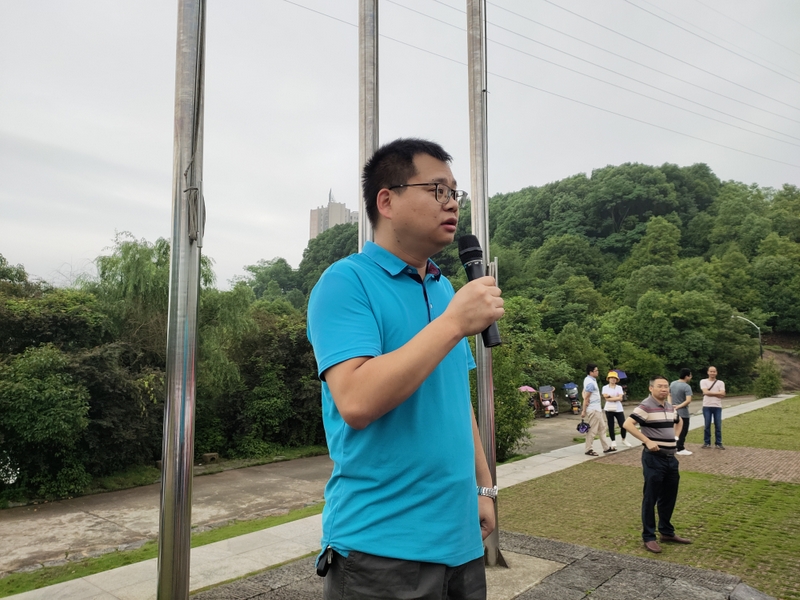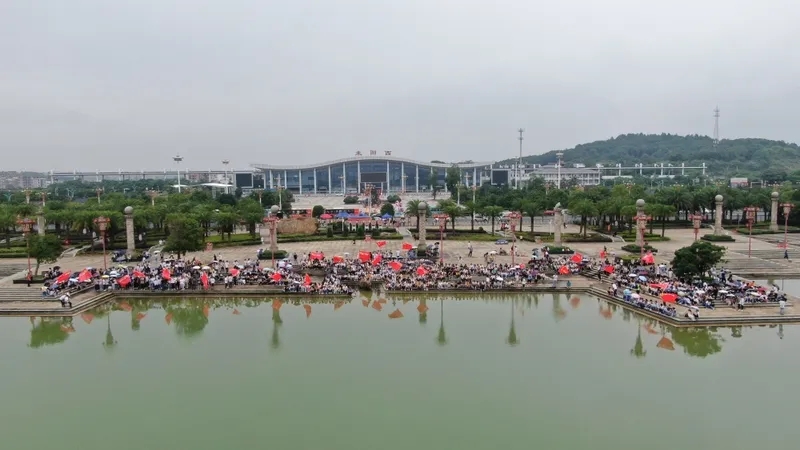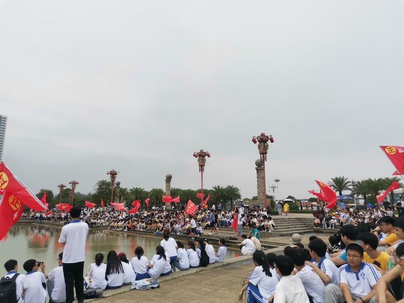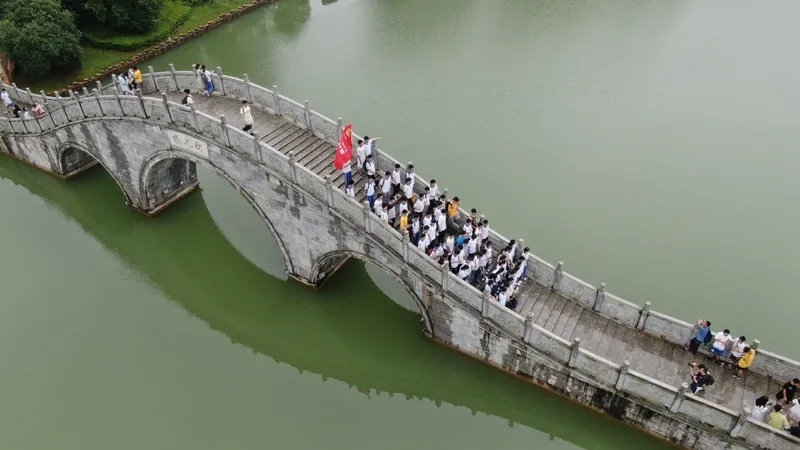 用完午餐,收拾干净广场卫生,1900师生背靠高铁站,面朝状元桥,环绕湖畔阶梯录像留念。红旗挥舞,青春飞扬。