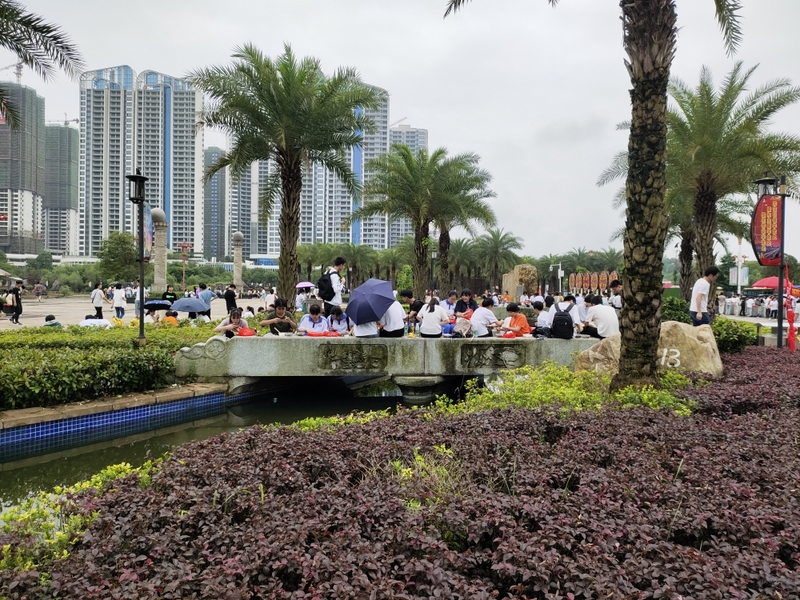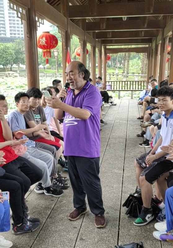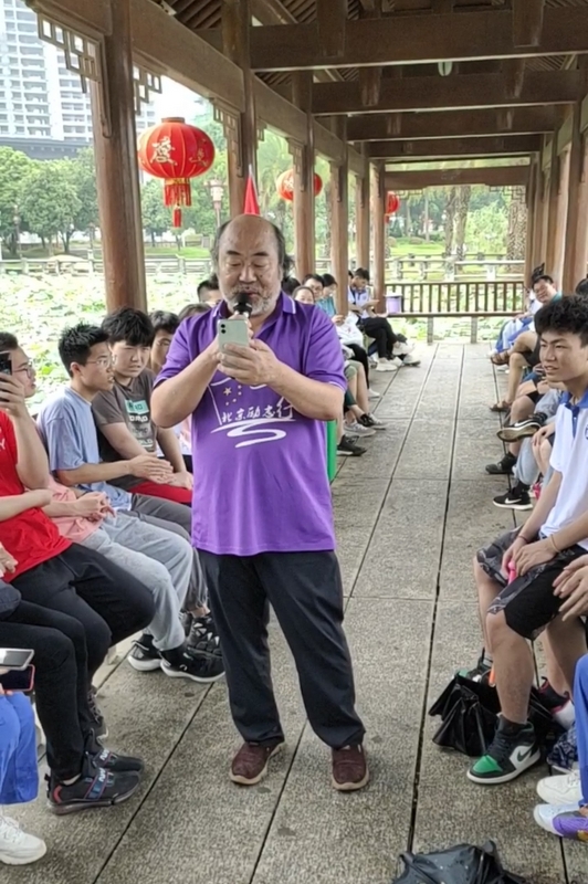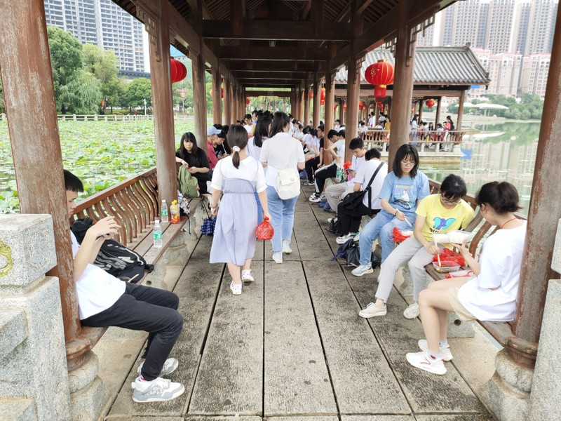 同学们散布在石栏前、曲径上、回廊里,或驻足自拍,或漫步窃语,或唱k飚歌。