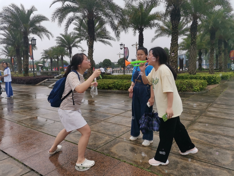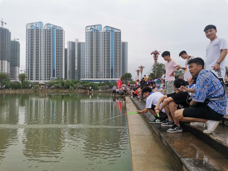 湖岸边却是画风一变——十七八岁的高三学生,这边几个在玩水枪,那边几个在吹泡泡,就连花花绿绿的玩具小喇叭,也在他们手头哔哔作响……瞠目结舌之余,传来几声“节日快乐”。哦,今天是六一,好吧,你们节日快乐!