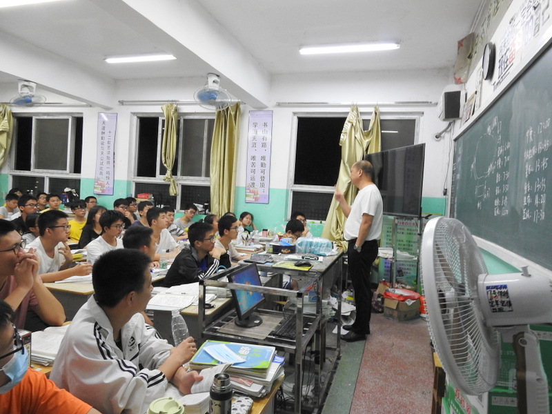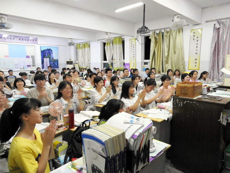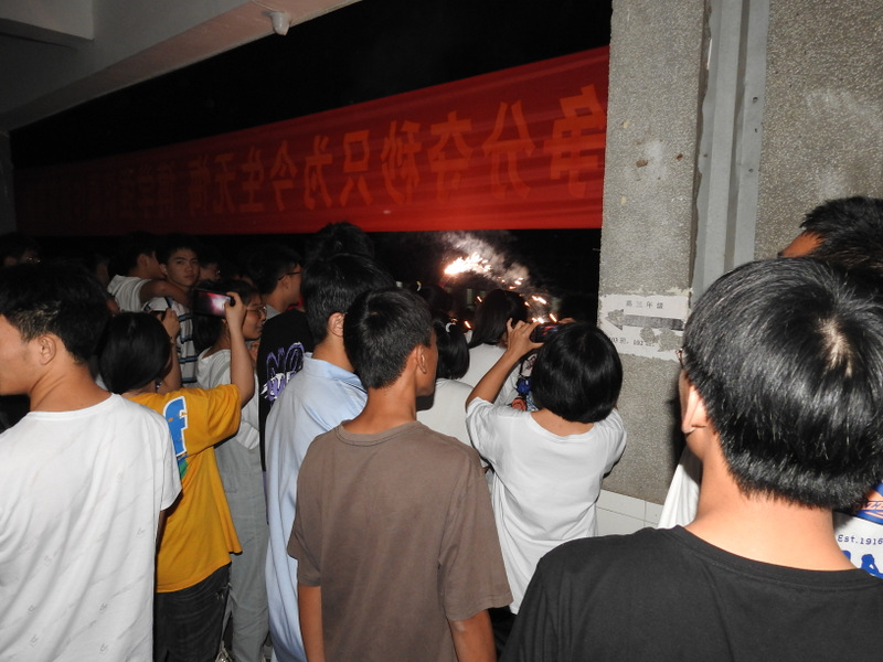 晚8:20,第一节晚自习下课,前栋教学楼高二年级走廊上传出清脆的喊声:“高三加油,学长加油!”