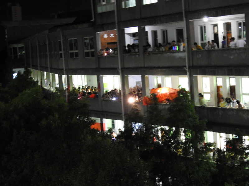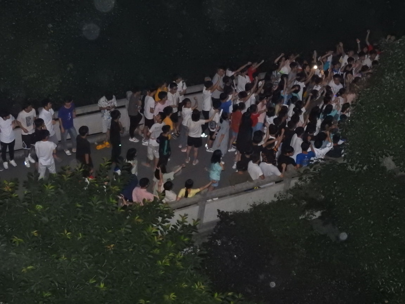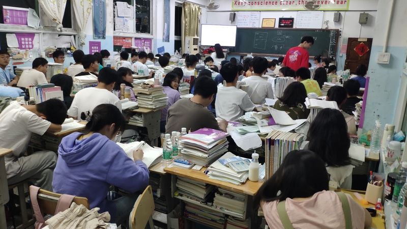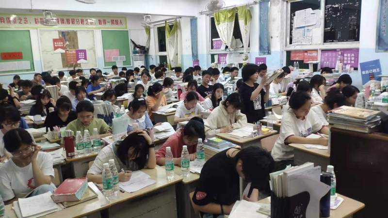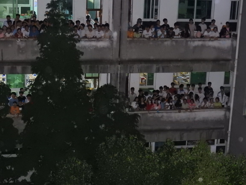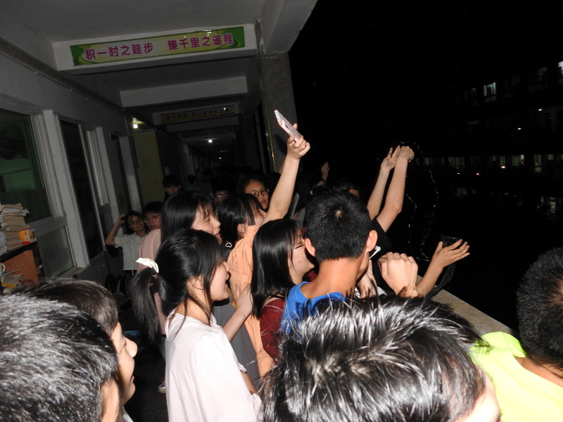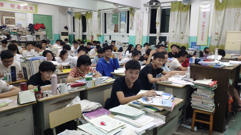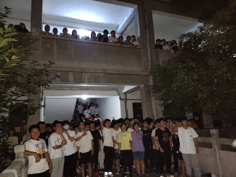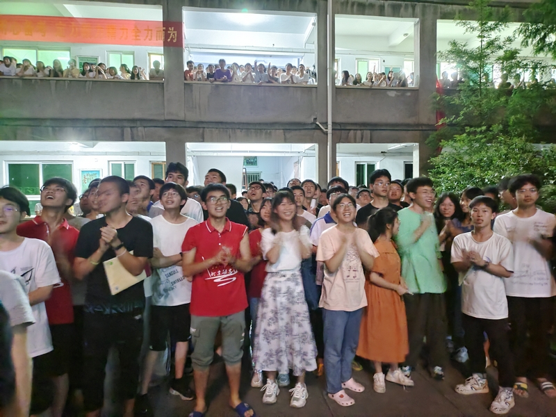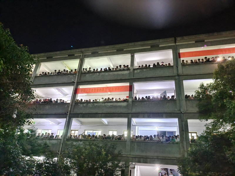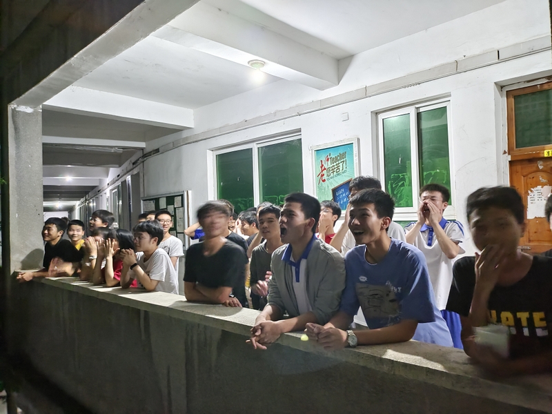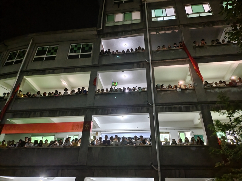“168加油!”,“183必胜!”高三同学涌上二楼连廊,开始互相鼓舞。