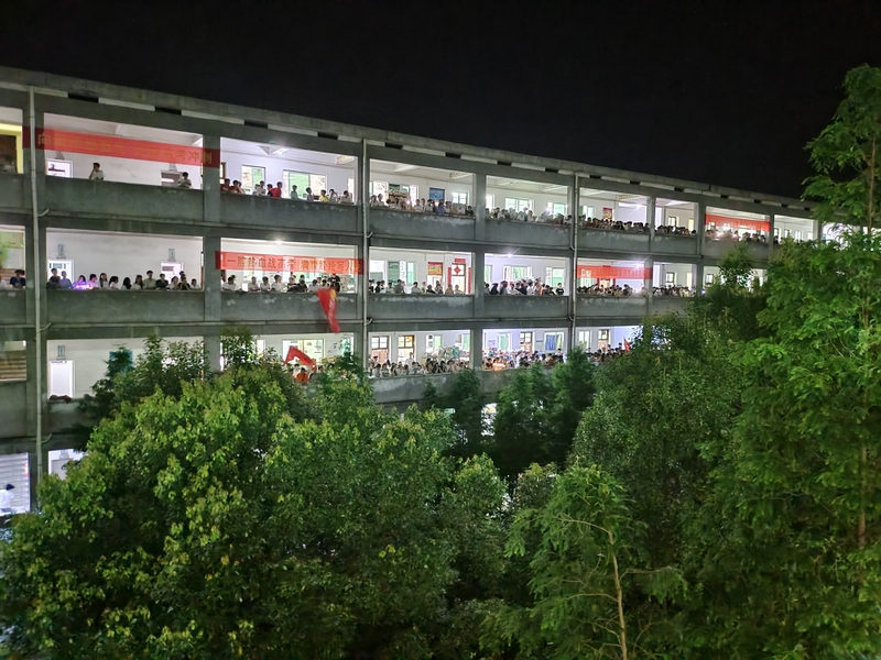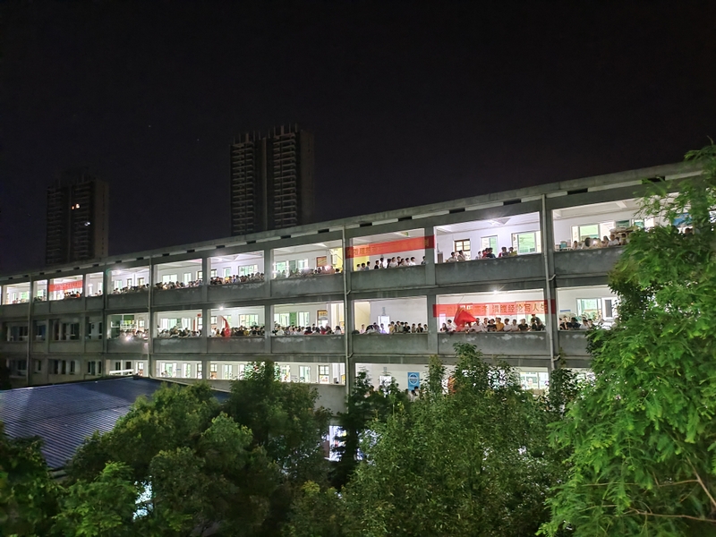 风吹过夏日的树梢,夹杂着拼搏的汗水和梦想的味道。教学楼里通明的灯火辉映着寂静的夜空。