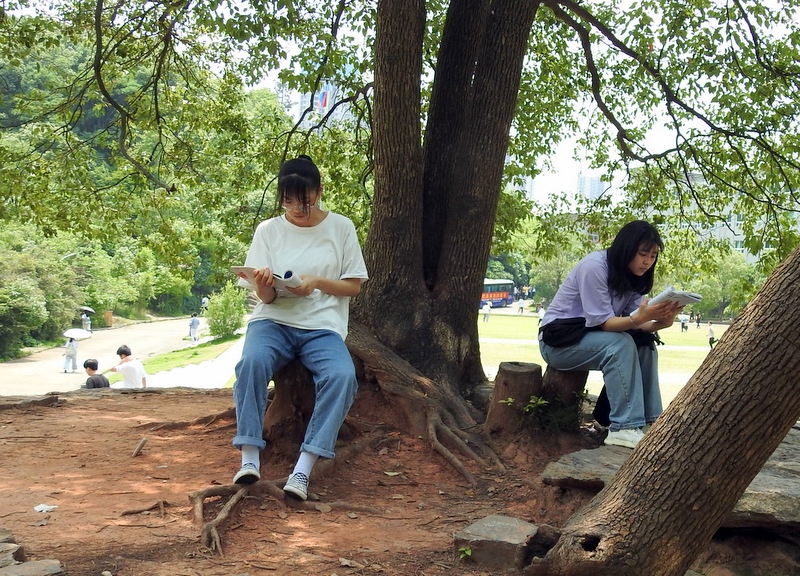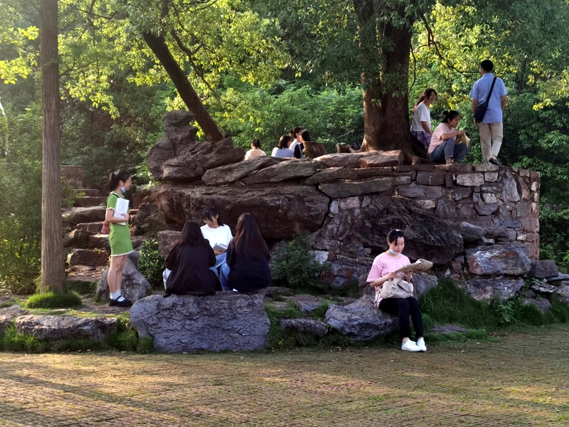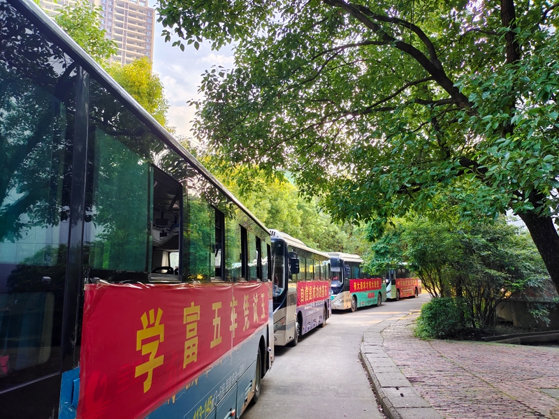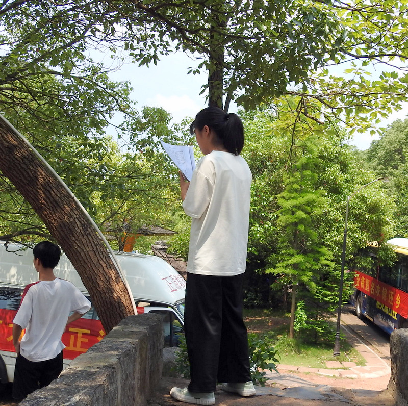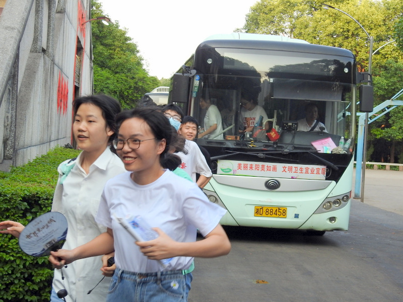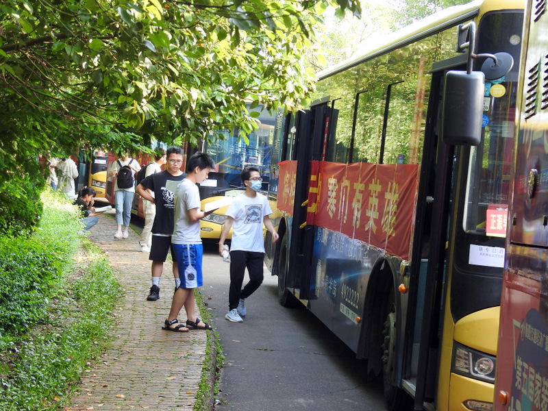 和煦的阳光在正源校园青山绿水间辉映,吃过早餐的高三考生早早来到学校广场旁,散布在草地上、林荫下、池塘边,利用登车前的间隙时间看书,探讨,抓紧复习。7:58,送考车队准时出发,“高考必胜”的口号再次响起,同学们在开开心心地给自己鼓劲。