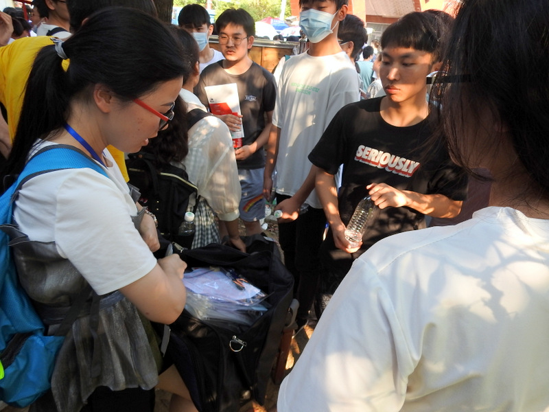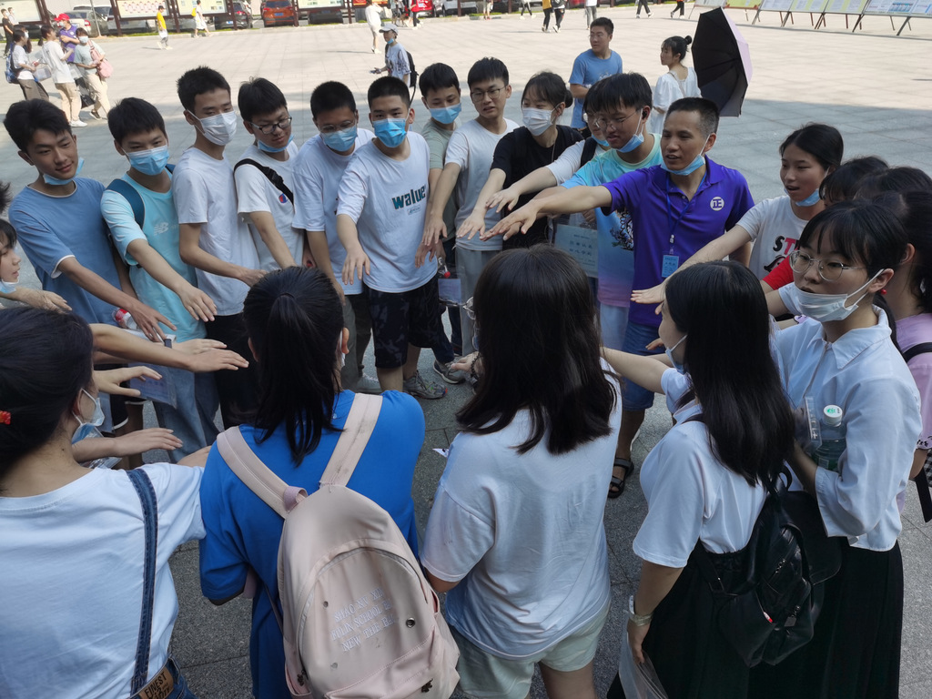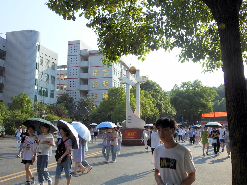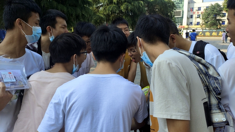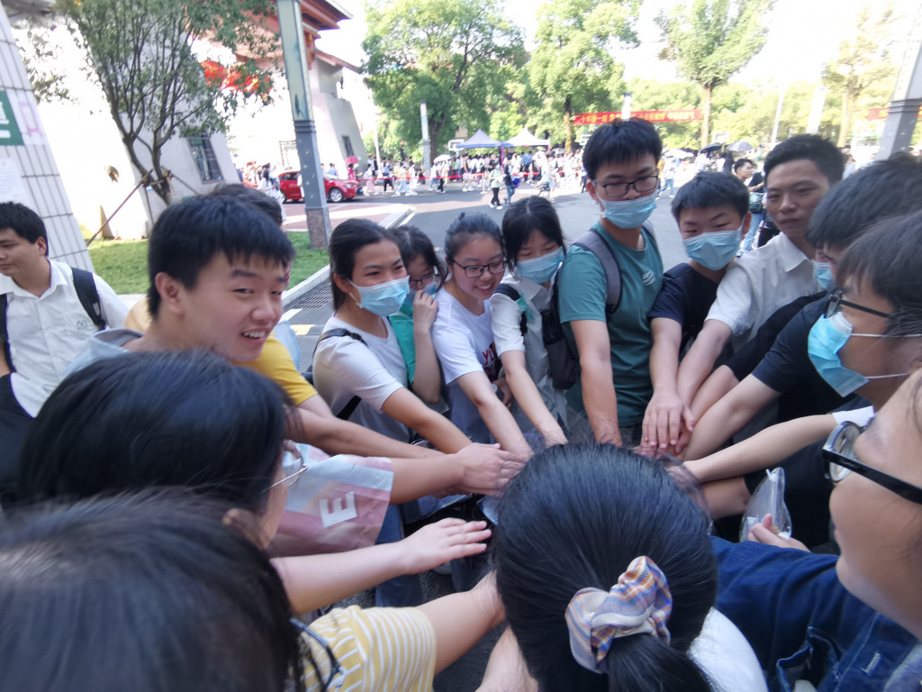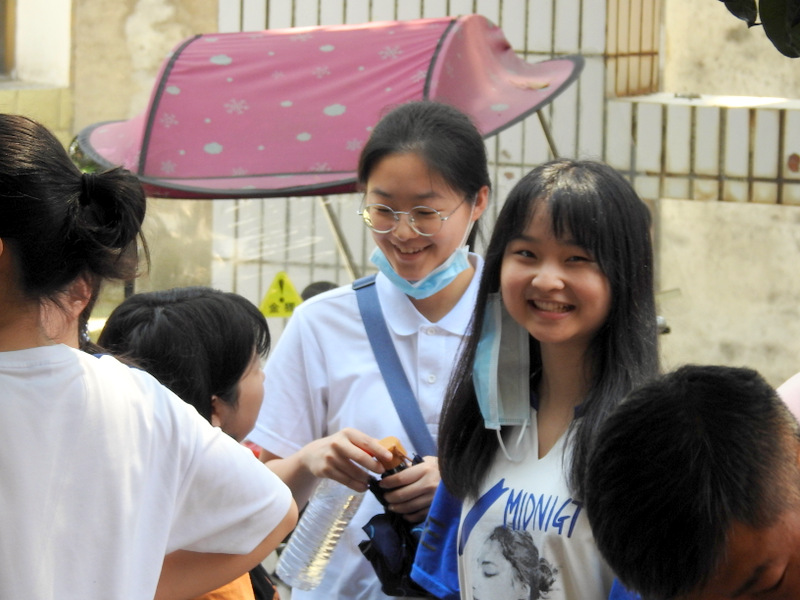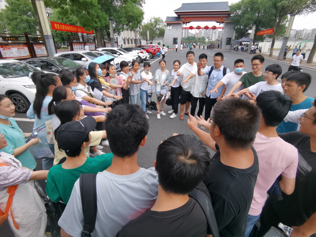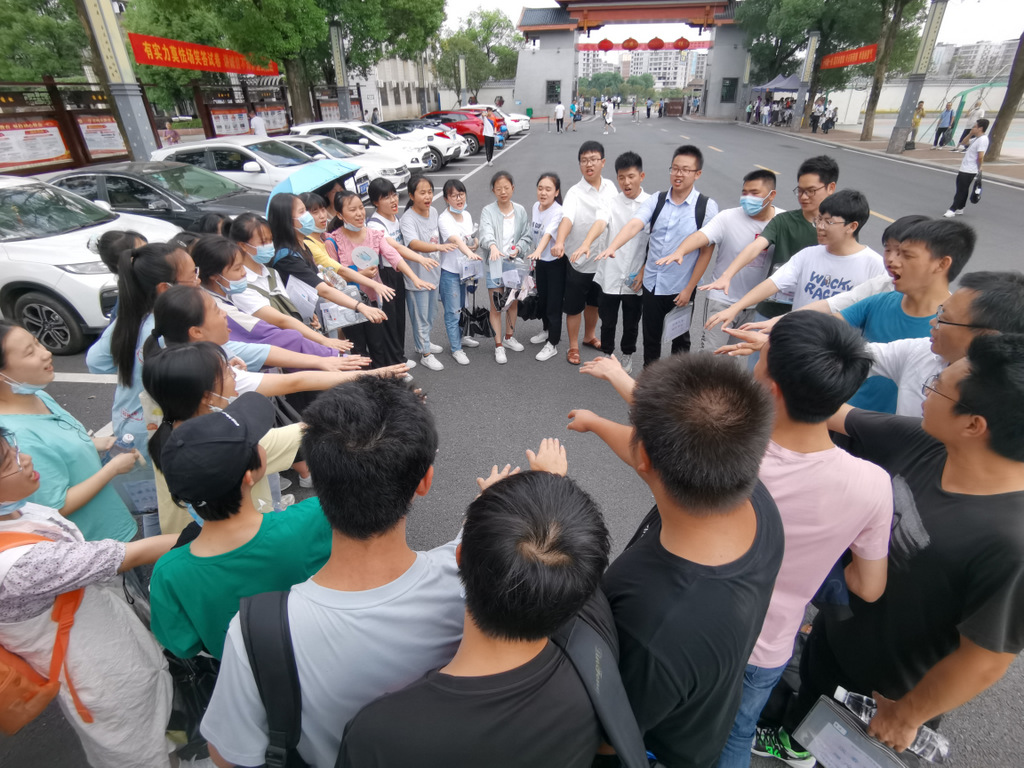 昨天的语文数学大家发挥得不错,首战告捷。经过一夜养精蓄锐,此时正是精神饱满,斗志昂扬,起初的紧张心情已经无影无踪。招生办主任李丰老师今早特意穿上旗袍,早早伫立在校门前给大家送行,向每一辆送考车上的同学挥手,就像当年把同学们迎进校门时一样,亲切和蔼,笑靥如花。上午考的物理难度较大,走出考室的考生正在议论纷纷,身旁的一堆男生却是眉飞色舞:“开始刚写前面的呢,我说这也太简单了吧!写着写着’嘭”地一下跳出两道难题,搞得我满头大汗……不过最后还是写出来了,好开心啊!”“昨天考完数学,校长在食堂不是说了吗?有难题,有挑战,才能更好地发挥我们敢打敢拼的正源精神嘛…”“哈哈哈哈!”