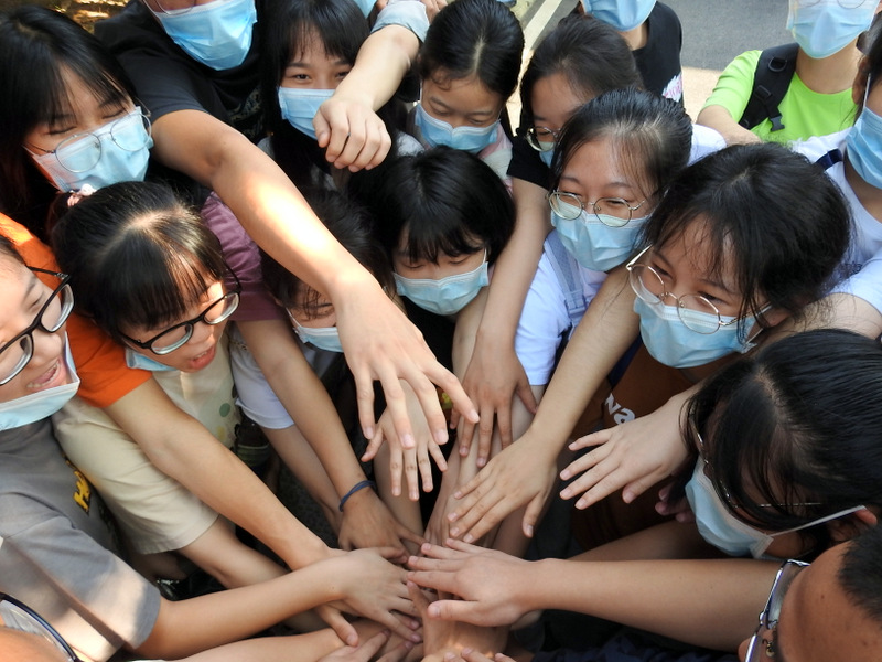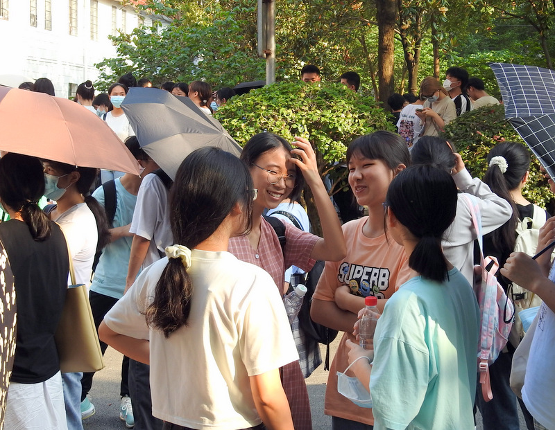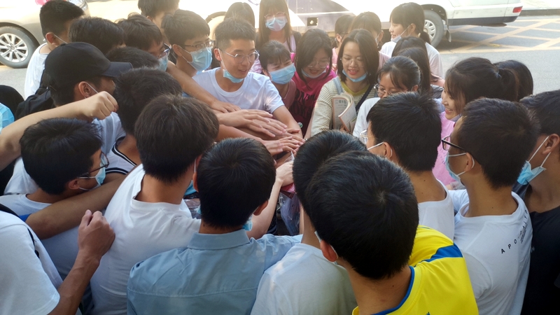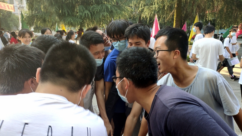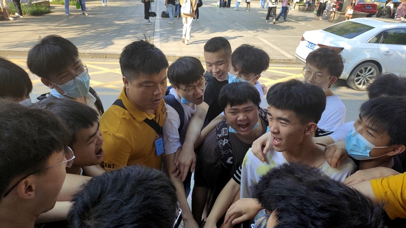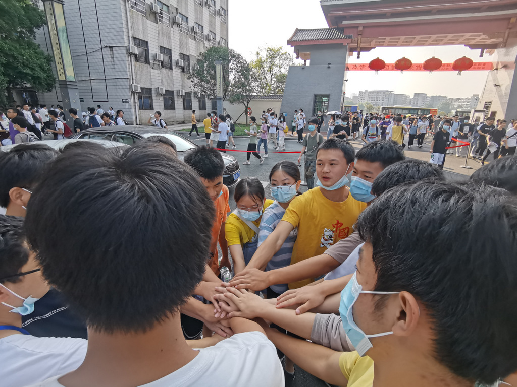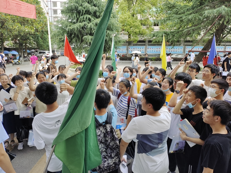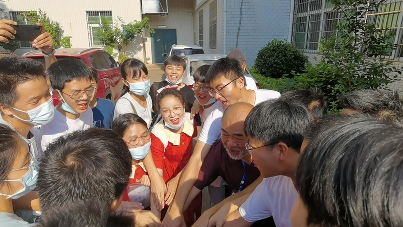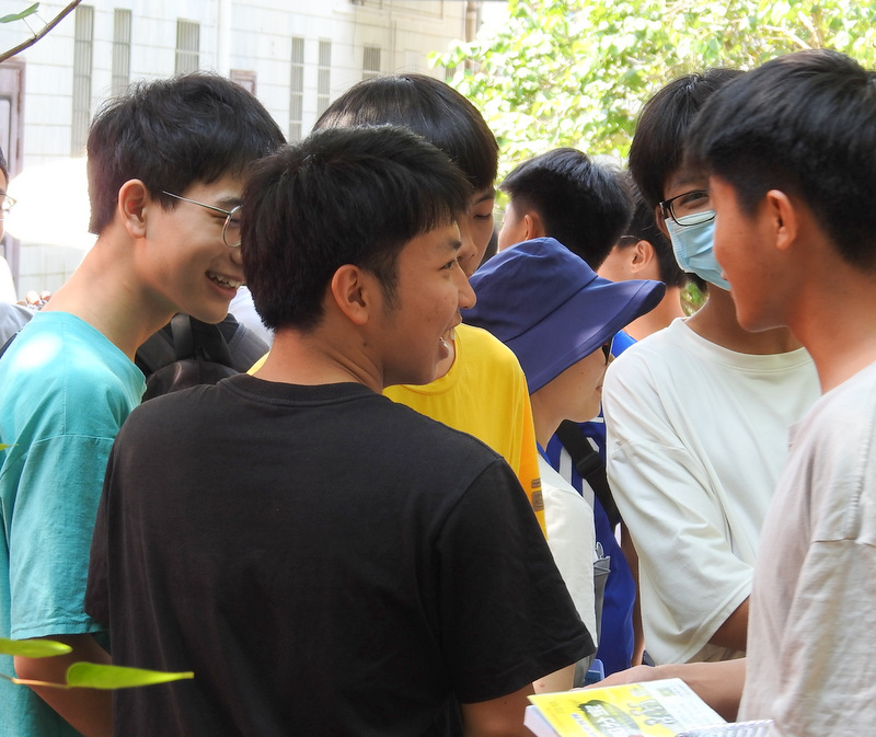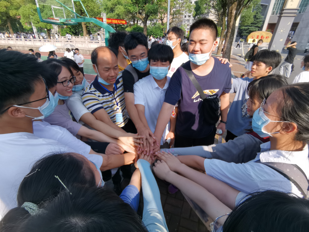 昨天的语文数学大家发挥得不错,首战告捷。经过一夜养精蓄锐,此时正是精神饱满,斗志昂扬,起初的紧张心情已经无影无踪。招生办主任李丰老师今早特意穿上旗袍,早早伫立在校门前给大家送行,向每一辆送考车上的同学挥手,就像当年把同学们迎进校门时一样,亲切和蔼,笑靥如花。上午考的物理难度较大,走出考室的考生正在议论纷纷,身旁的一堆男生却是眉飞色舞:“开始刚写前面的呢,我说这也太简单了吧!写着写着’嘭”地一下跳出两道难题,搞得我满头大汗……不过最后还是写出来了,好开心啊!”“昨天考完数学,校长在食堂不是说了吗?有难题,有挑战,才能更好地发挥我们敢打敢拼的正源精神嘛…”“哈哈哈哈!”