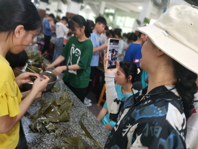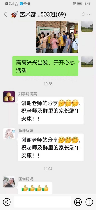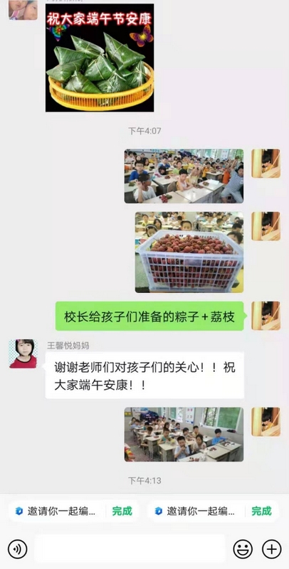 每逢佳节倍思亲。过节,远在外地的家长最牵挂的是孩子。班主任一边指导孩子们包粽子,一边掏出手机给同学们拍照,拍下同学们的粽子,拍下同学们的欢笑,把孩子们这难忘的节日时光拍摄下来发送到班级群,与家长分享。