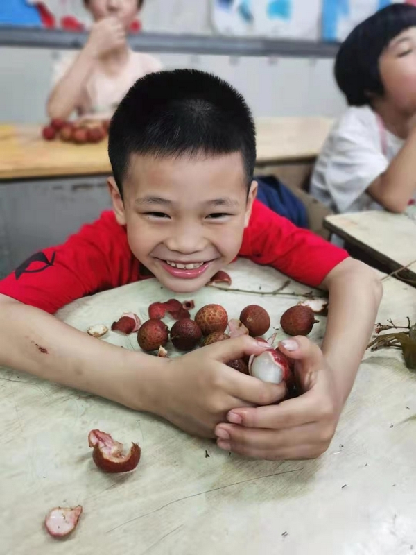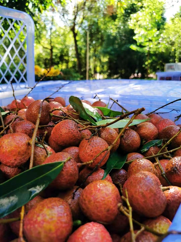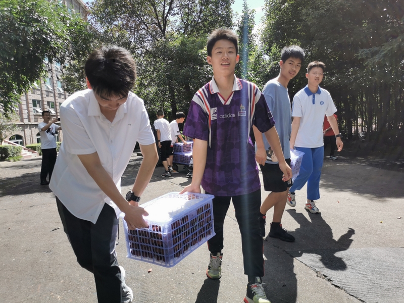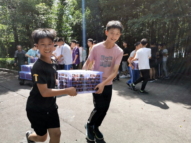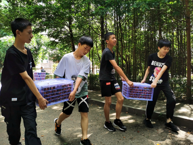 为了给孩子们过节,学校早已提前派车奔赴广西钦州,直达产地。昨天下午从山间枝头订购,现场加冰装车,新鲜采摘的冰镇荔枝连夜启程,今天中午开始分发给全校17000师生抢鲜享用。