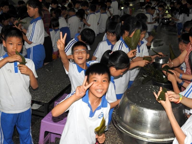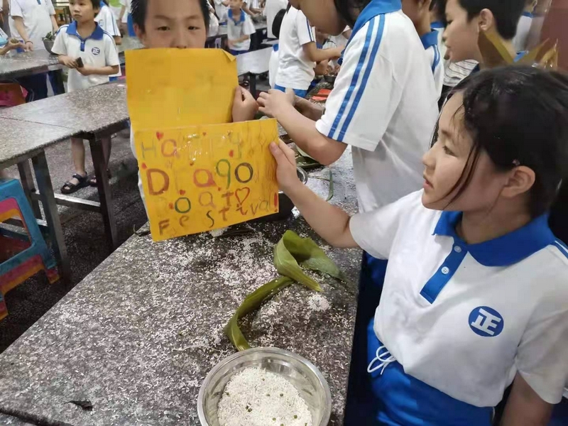 又到了粽叶飘香的端午节,正源学校没放假,全体师生在校园里共度佳节。