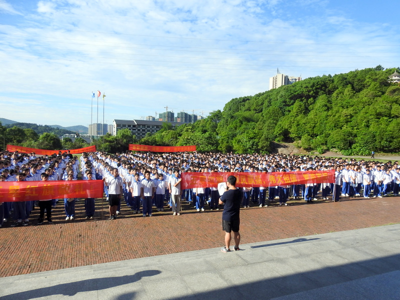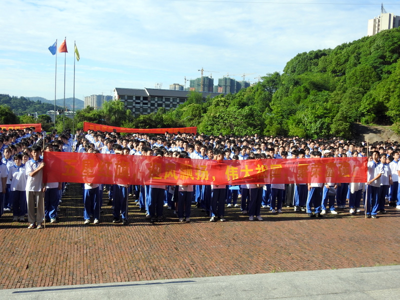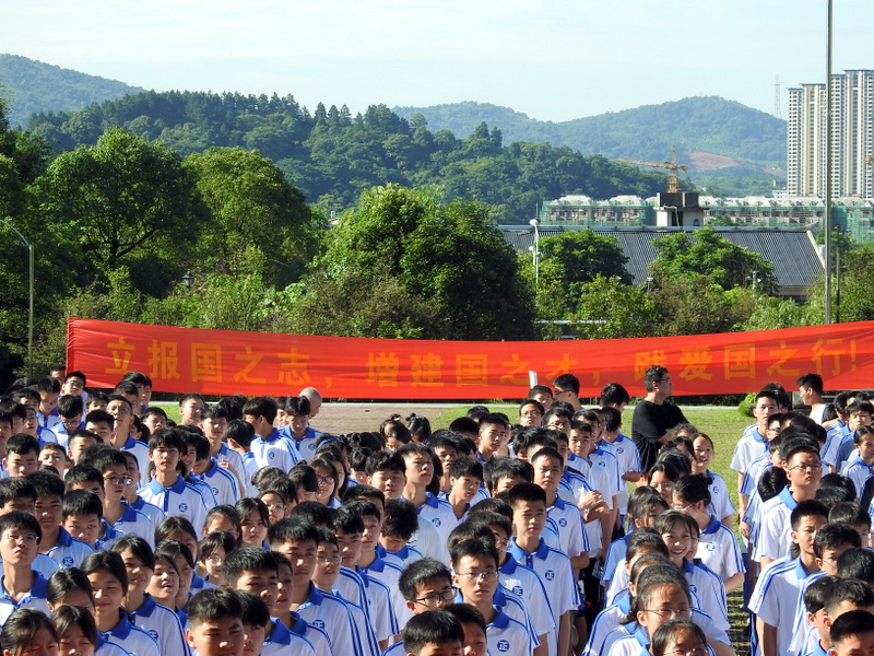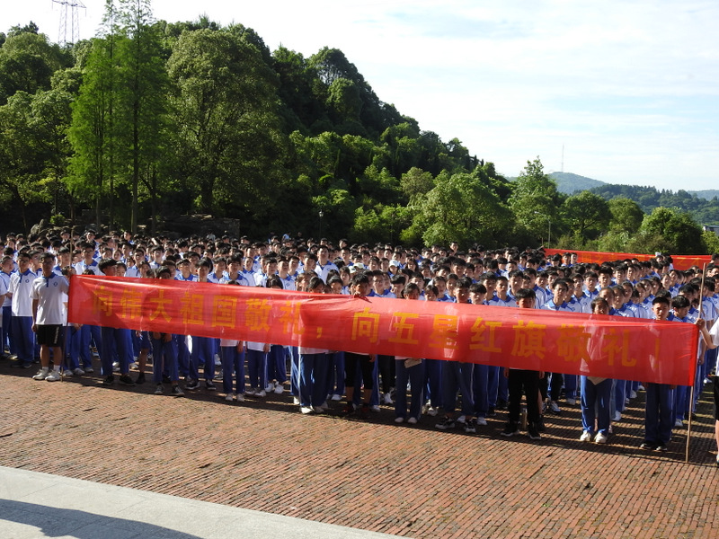 正源准高一年级1500余名同学集结在学校广场举行升旗仪式。