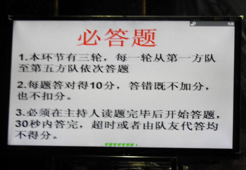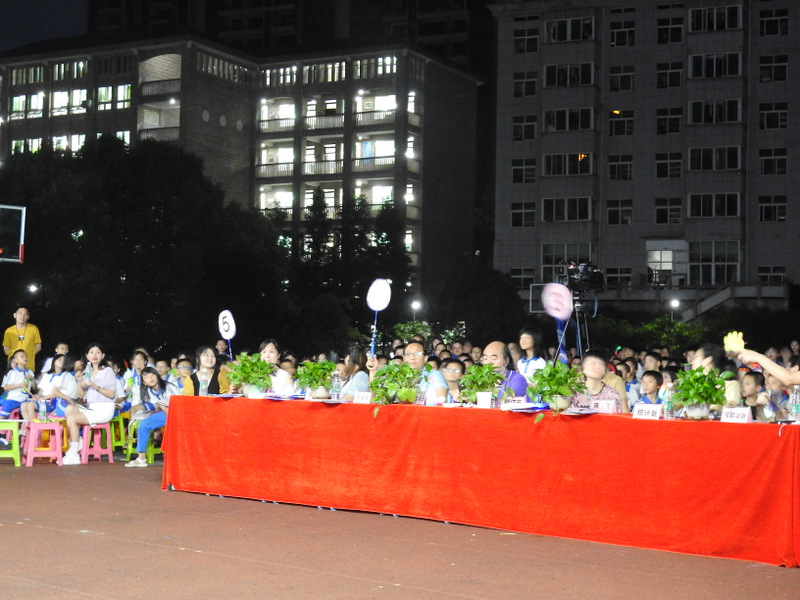 接着激动人心的时刻到了——场下观众互动答题环节。将由抽奖软件随机抽取一名观众进行答题,人人都有机会,底下方阵中的孩子们彻底沸腾了。很多孩子在环节结束之后还意犹未尽,希望时间不要过的太快。 观众互动之后是更紧张更激烈的抢答题,这完全考的是大家对《水浒传》知识了解的深度和熟悉程度。最后的压轴题是风险题。经过激烈的角逐,最终由341班、342班、343班选手组成的九纹龙队摘得桂冠,由329班、330班、331班选手组成的霹雳火队获得亚军,由344班、345班、346班选手组成翻江蜃队获得季军。比赛现场气氛热情高涨,各方阵的啦啦队努力为自己的代表队加油。持续了一个半小时的精彩比赛最终落下帷幕。知识的奥妙与乐趣,让我们久久不能忘怀,生活的竞争和奋斗让我们永远不会止步。我们拭目以待,期待下届活动能更加精彩。