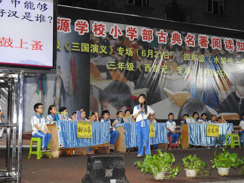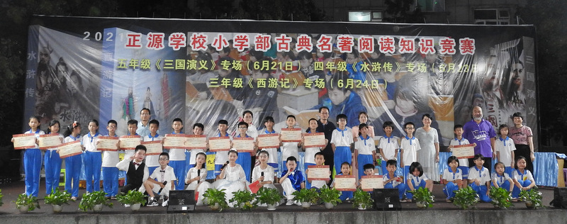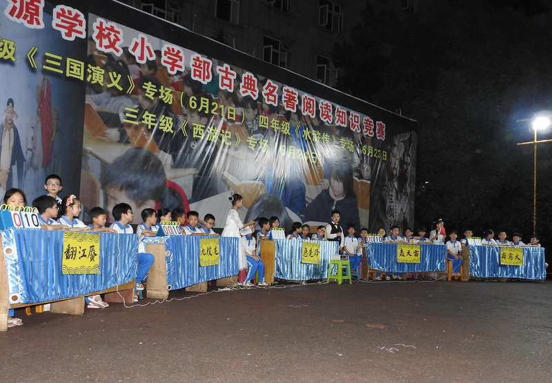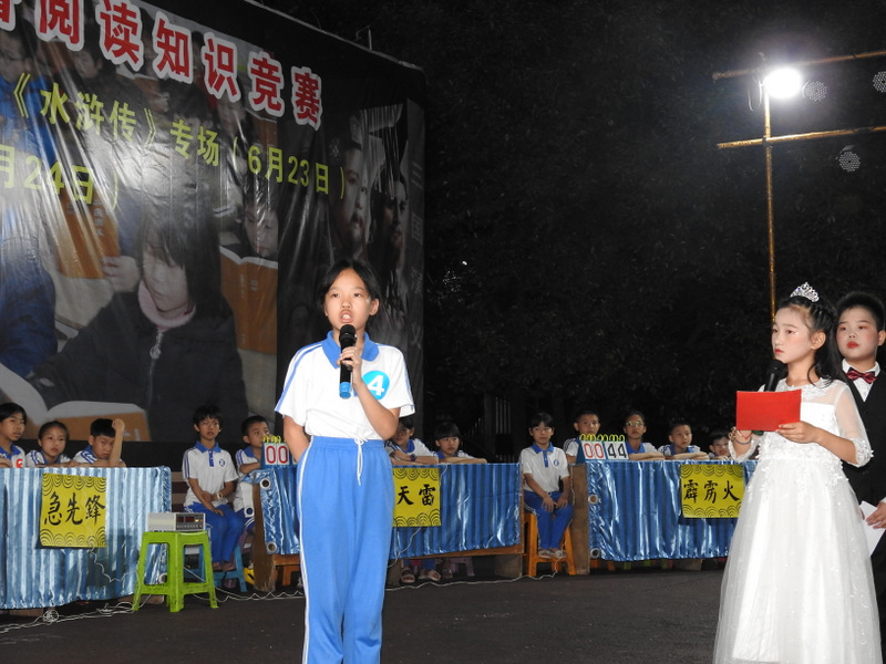 文学名著是人类文学宝库中的精品,它经过时间的淘洗,慢慢沉淀在我们心中,潜移默化地感染着我们;文学名著的精髓更是与我们相随终生的伴侣,也是我们的精神家园。为使全体同学能走进名著,领略名著的精髓,正源学校小学部四年级于6月23日晚7点30分在小学部操场举行了“读名著水浒,知英雄好汉”的名著知识竞赛。